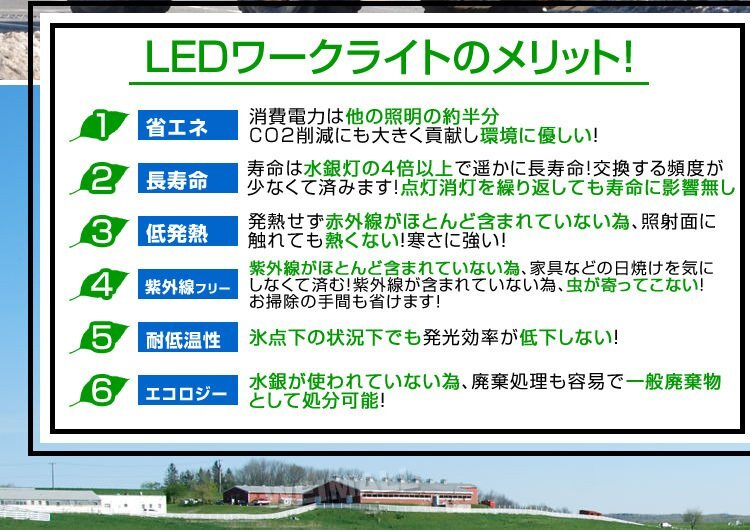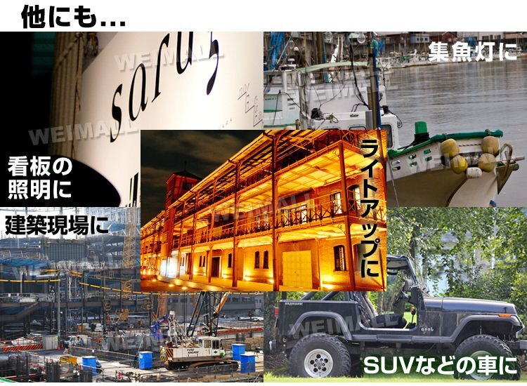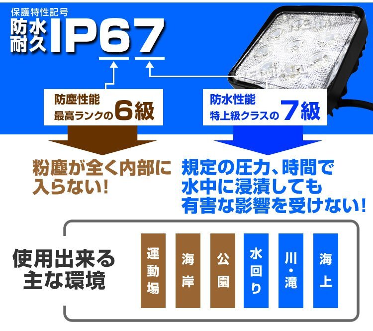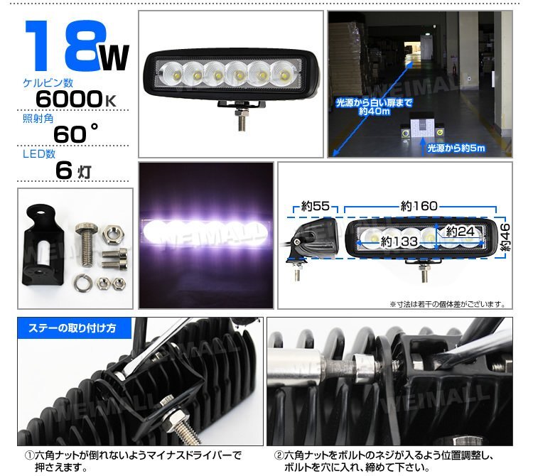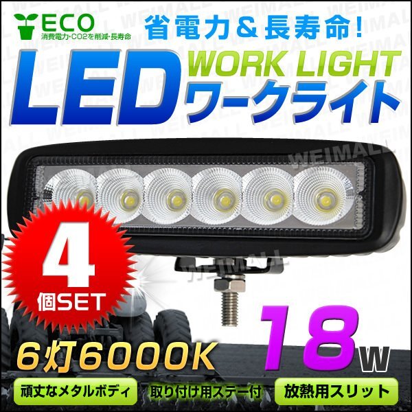 | お得用 4個セット LED作業用(ワークライト) 明るくコンパクトな汎用LED作業灯(ワークライト)です。 漁船・漁業、農業機械、建設機械、工程機械、トラック、デッキライト等に、災害時の備えに、工事現場に様々な場面で活躍! 防水性能IP67だから車両搭載や屋外使用も可能!! 取付ステーで上下のライト角度調整可能!! バッテリーのプラスとマイナスの接続だけですぐに使用出来ます。 ◎主な用途 ・トラックの荷台用の照明 ・フォークリフトのライト ・除雪車のライト ・海苔漁の常夜灯 ・漁業の集魚灯 ・キャンプ等では車などのバッテリーに繋いで使用可能 ■商品仕様 LEDパワー:18W 動作電圧:10V〜30V 色温度:6000K 防水等級:IP67 LED:3w×6pcs 18Wの高出力LED 照射角:広角タイプ(光角度:60度) 長寿命(約):30000時間 本体材質:アルミ合金 レンズ材質:PMMA 配線の長さ(約):430mm サイズ(約):160×46×55mm(取付金具除く) 重量(約):410g ■注意事項 本製品はDC電源(直流電源)仕様となっております。AC電源(交流電源)では絶対に使用しないでください。 | ◇入荷状況により細かな仕様変更がございます。その場合、写真ではなく現物が重視されますので神経質な方は入札をご遠慮ください。 ◇当商品は海外製品になりますので、細かいキズ、ネジのゆるみなどがある場合がありますが、返品・交換対象とはなりません。神経質な方のご入札はご遠慮ください。 ◇商品内容はあくまでも出品概要に基づきますのでご注意ください。 ◇本商品を使用した際に発生したトラブル、事故につきまして、当社は一切の責任を負いかねます。 ◇メーカーではないため、専門的なご質問にはお答えできません。 ◇検品・点灯確認済みですので破損以外の交換には応じられません。商品到着時にはその場で開封、破損の有無を確認し、破損の場合には受け取らないか配送業者に申し出てください。 ◇加工および一度装着した商品の返品・交換には対応できません。事前の確認をお願いします。 また、商品の取付にかかわる費用等の弁済には対応できません。 ◇付属のコードなどの切断による、繋ぎ変えなどをされた商品に対しての、返品・交換は致しません。 ◇取り付けによる破損接続不良等責任を負いかねますので専門業者に依頼するかご自身の責任でお取り付けください。 ◇初期不良時のいきなりの「悪い・非常に悪い」での評価連絡に対しては対応できません。 |