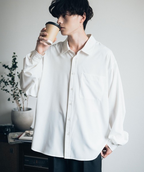 参考商品名:オーバーサイズ レギュラーカラーストレッチ長袖シャツ