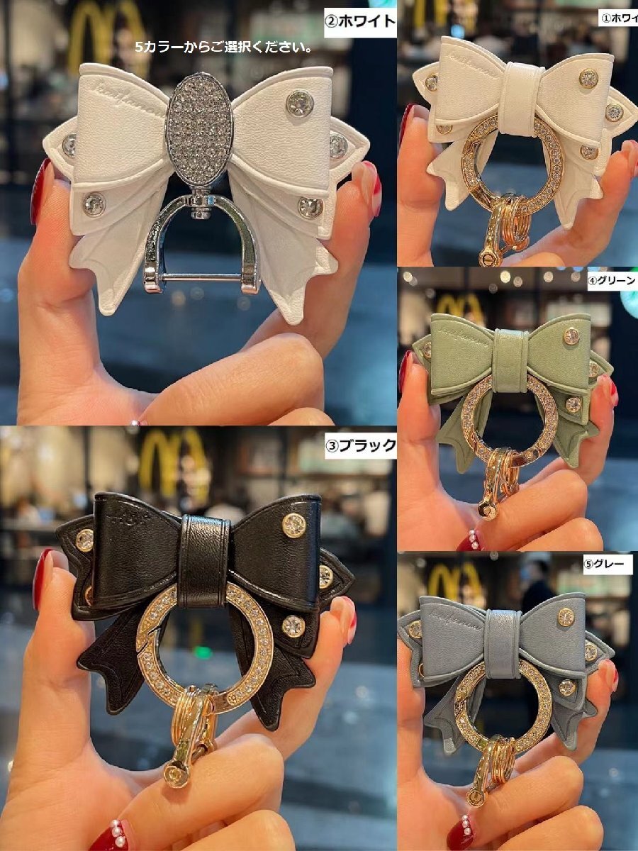 【上質な革質】品質にこだわって上質なマイクロファイバーレザーを厳選して作り出したキーホルダーです。なめらかで柔軟であリ、高い耐用性と良い手触り、 耐摩耗性、耐寒性、耐酸性特性を持っています。 【頑丈な亜鉛合金構造】金具部分は高品質の光沢仕上げの亜鉛合金で作ったので、陽極酸化処理されており、表面は滑らかでバリもなく、耐食性、防錆性や耐摩耗性に強いです。 【高級感溢れ】 金具の表面もラインストーンで飾られて、キラキラと輝いていますので、 実用性と美しさを重視したスタイリッシュなキーホルダーです。 【完璧なギフト】自用だけでなく、家族、友人、恋人への贈り物としてもおすすめです。 ※素材の注意書き:お使いのモニターの発色具合によって、実際のものと色が異なる場合がございます。 ※以上のサイズはすベて人工で測定したもので、誤差は1-3cmで正常です。 リボン型レディースホルダーです。ラインストーンが散りばめられていて鮮やかでとてもかわいいです。 商品名:リボン型車の鍵ホルダー 数量:2PCS 素材:本革+亜鉛合金 全長:約7cm 重さ:約37g カラー:①ホワイト、②ホワイト、③ブラック ④グリーン ⑤グレー ⑥レッド ⑦水色 ご購入後カラーのご連絡よろしくお願い致します。