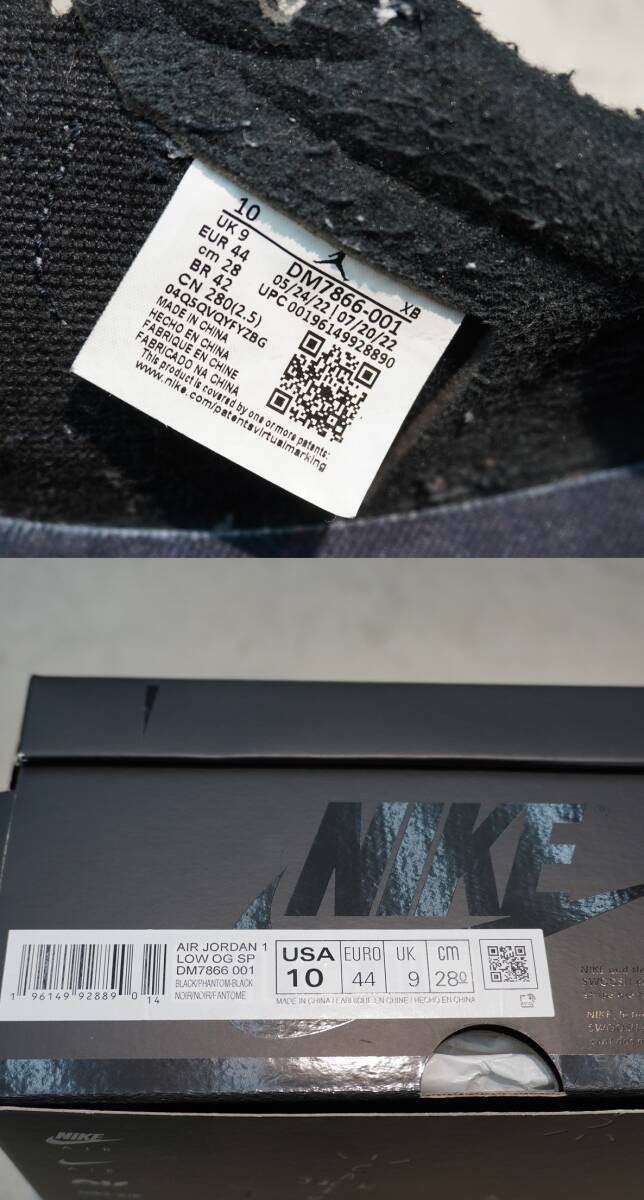 正規 NIKE × TRAVIS SCOTT AIR JORDAN 1 LOW OG SP BLACK PHANTOM DM7866-001 トラヴィススコット エアジョーダン1 US10本物1110P▲