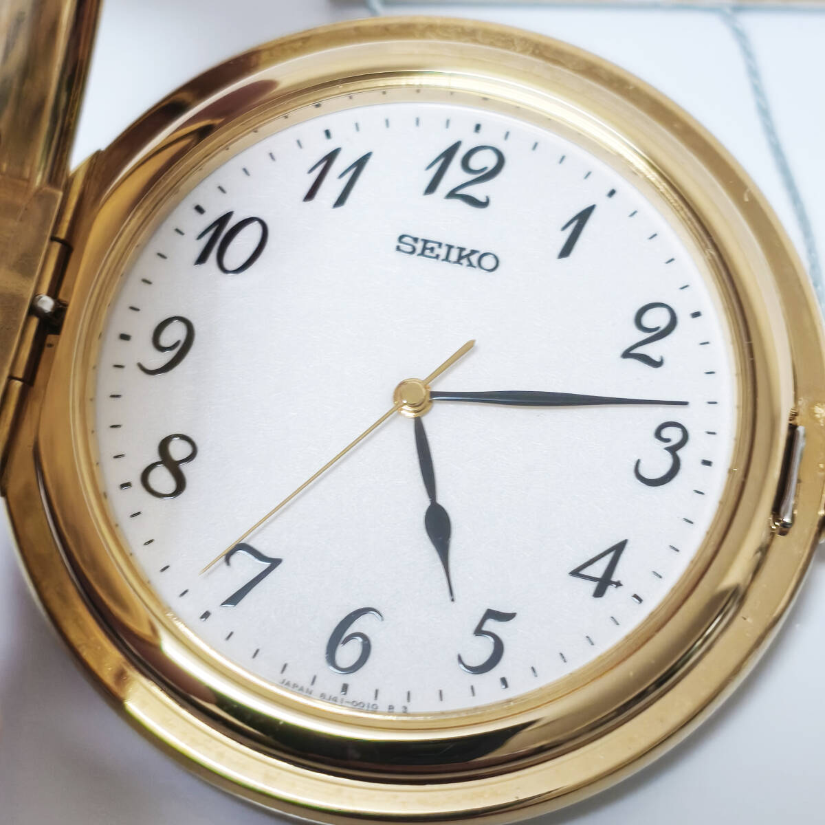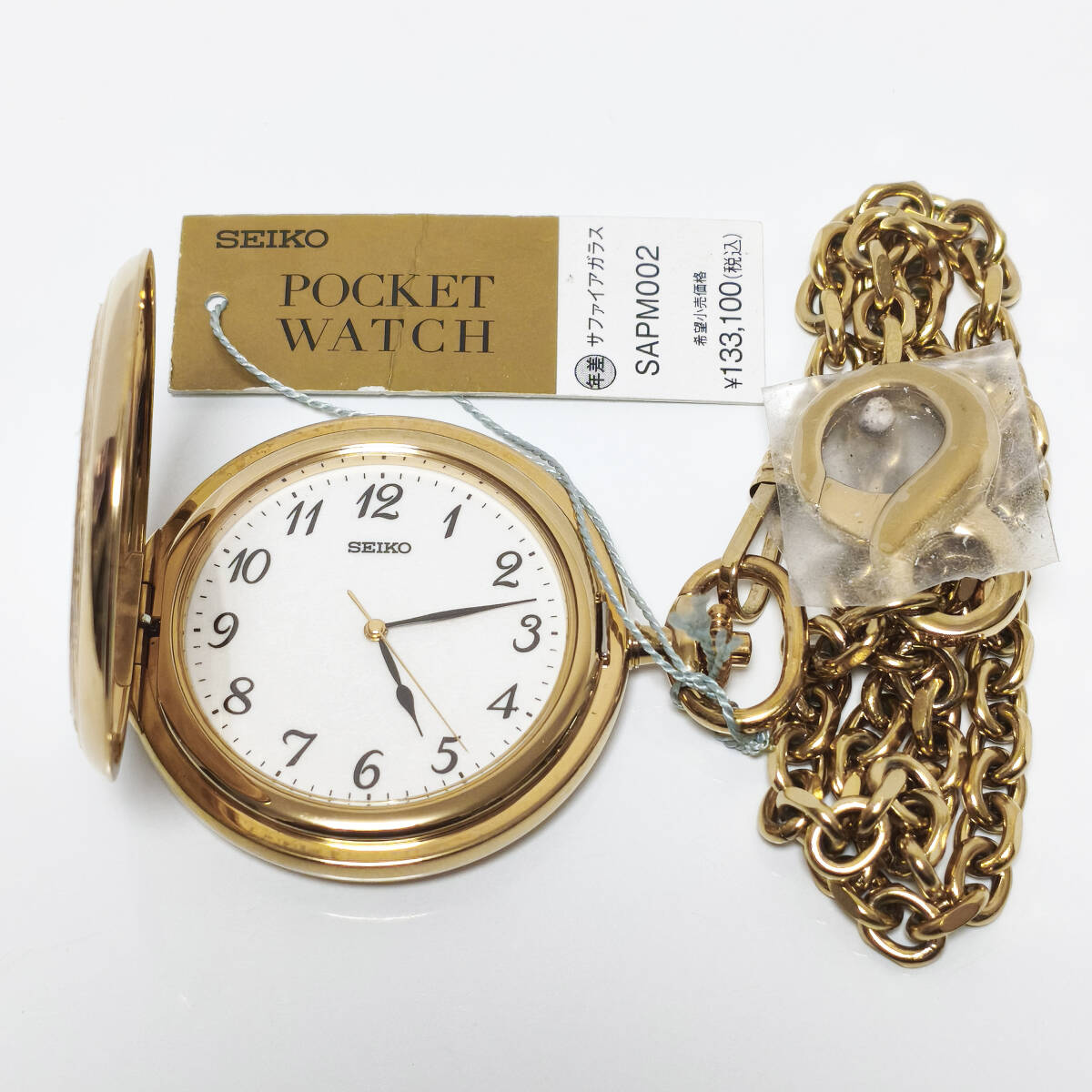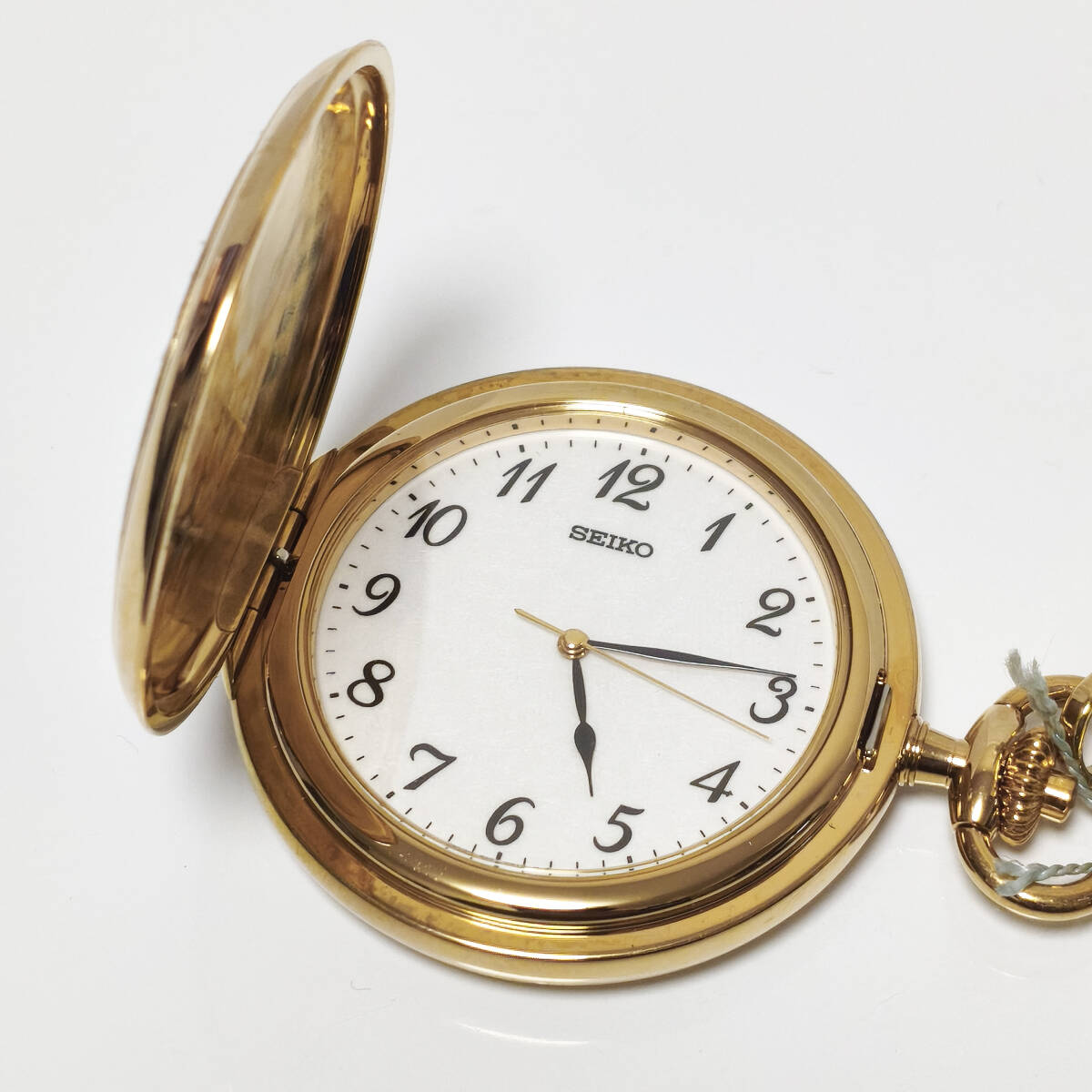1円スタート 未使用 新品電池 定価13万円超 セイコー ポケットウォッチ SAPM002 8J41-0010 クオーツ ゴールド ホワイト文字盤 懐中時計