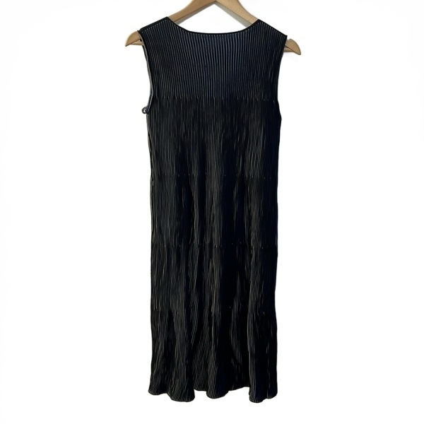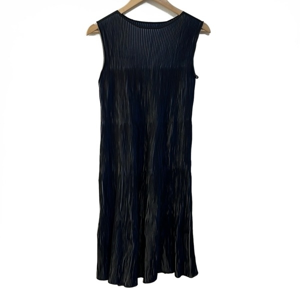 ミー/イッセイミヤケ me ISSEY MIYAKE - 黒×ブルー×白 レディース ノースリーブ/ロング/プリーツ ワンピース