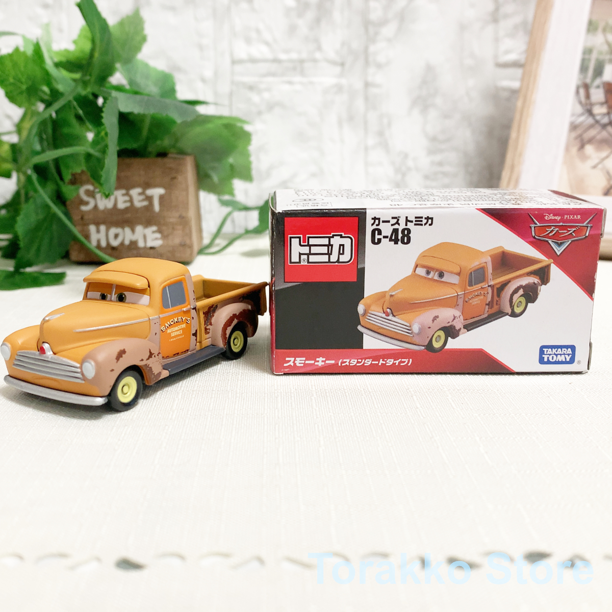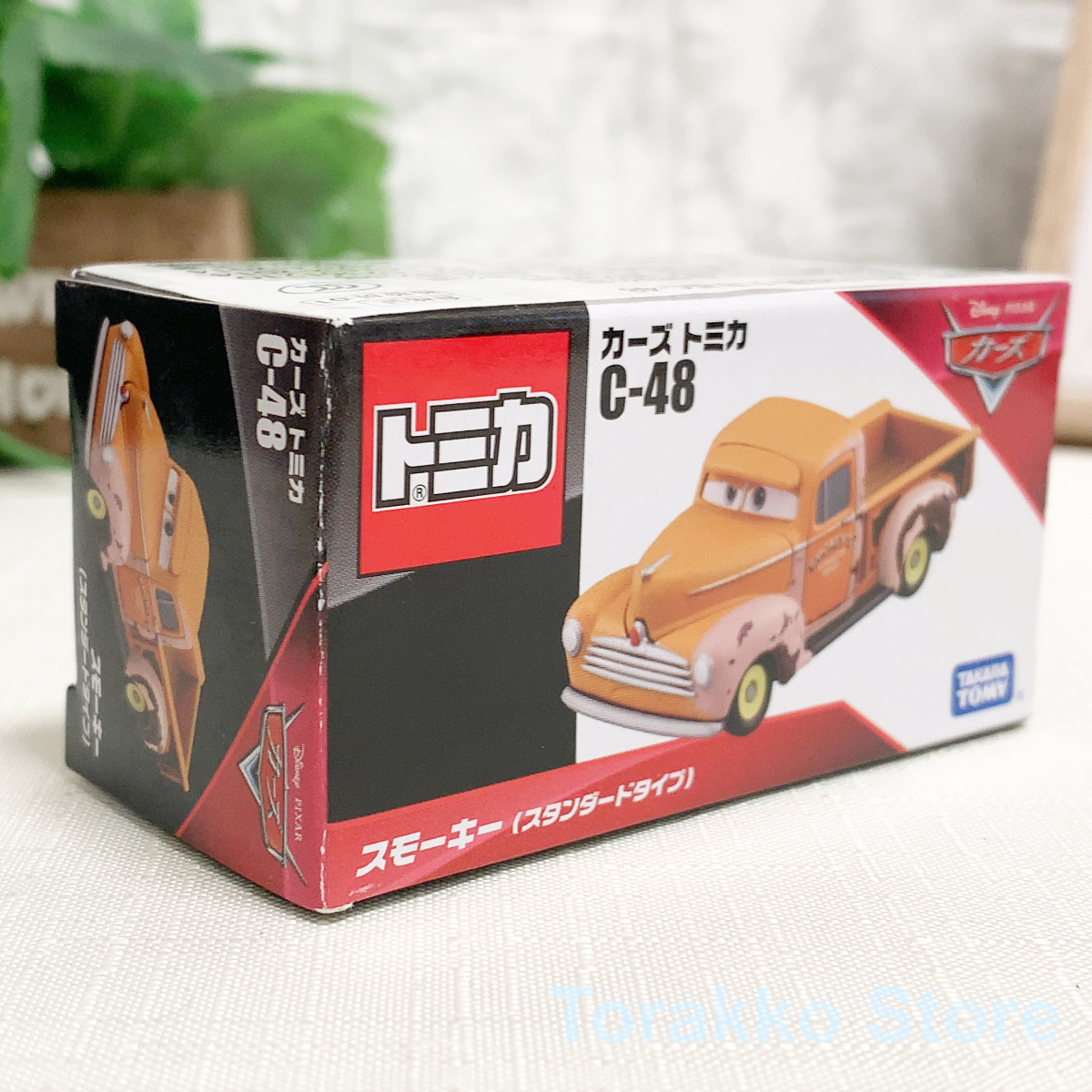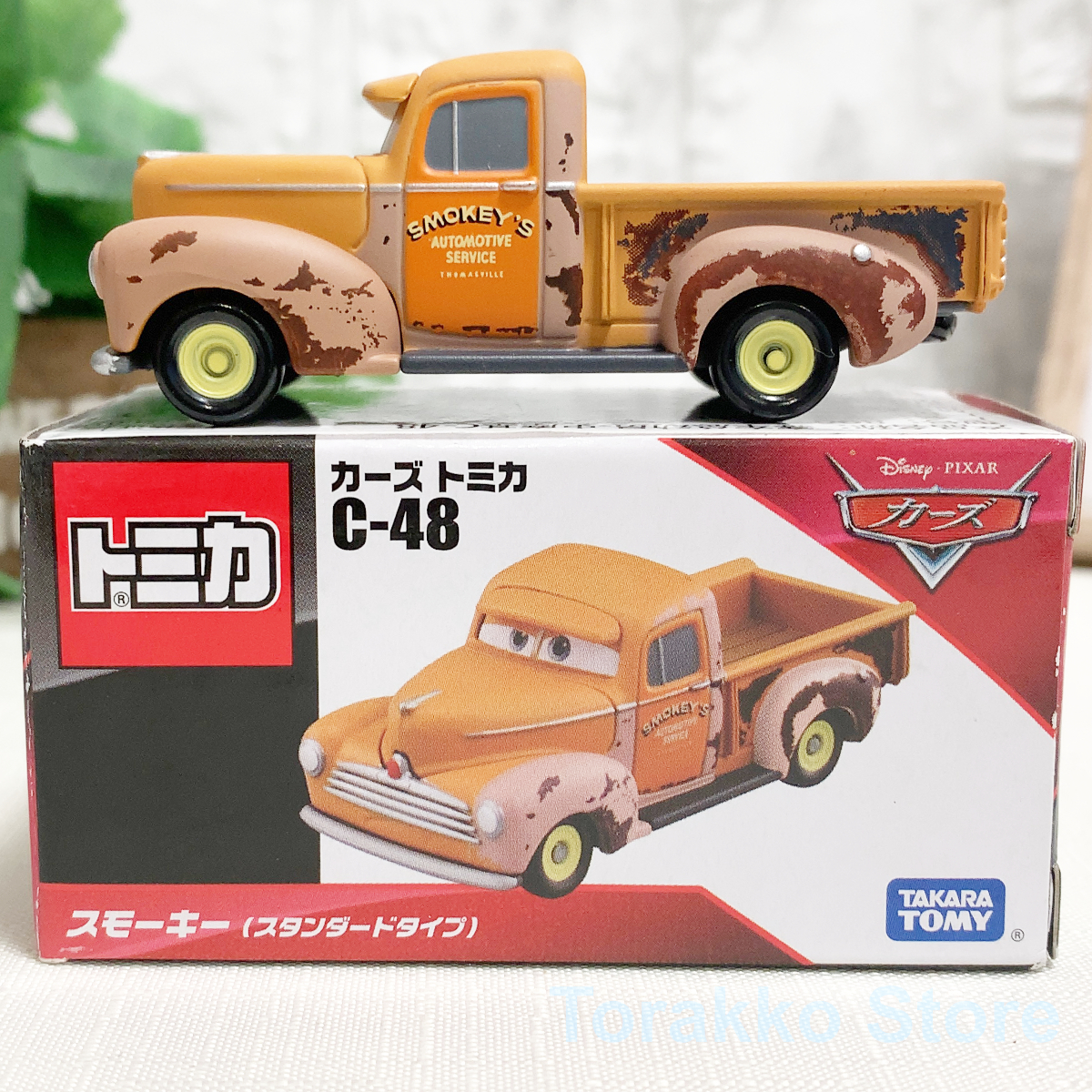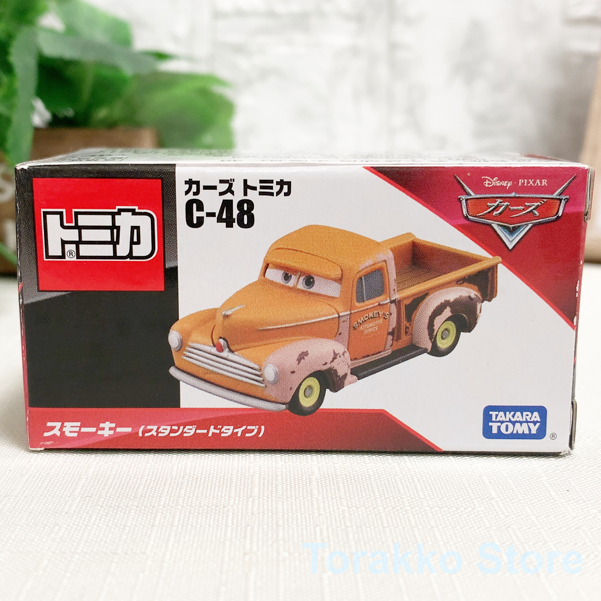 今回ご出品させていただくのは、タカラトミーと定番シリーズの1つカーズトミカの廃盤品 C-48 スモーキー(スタンダード)です。