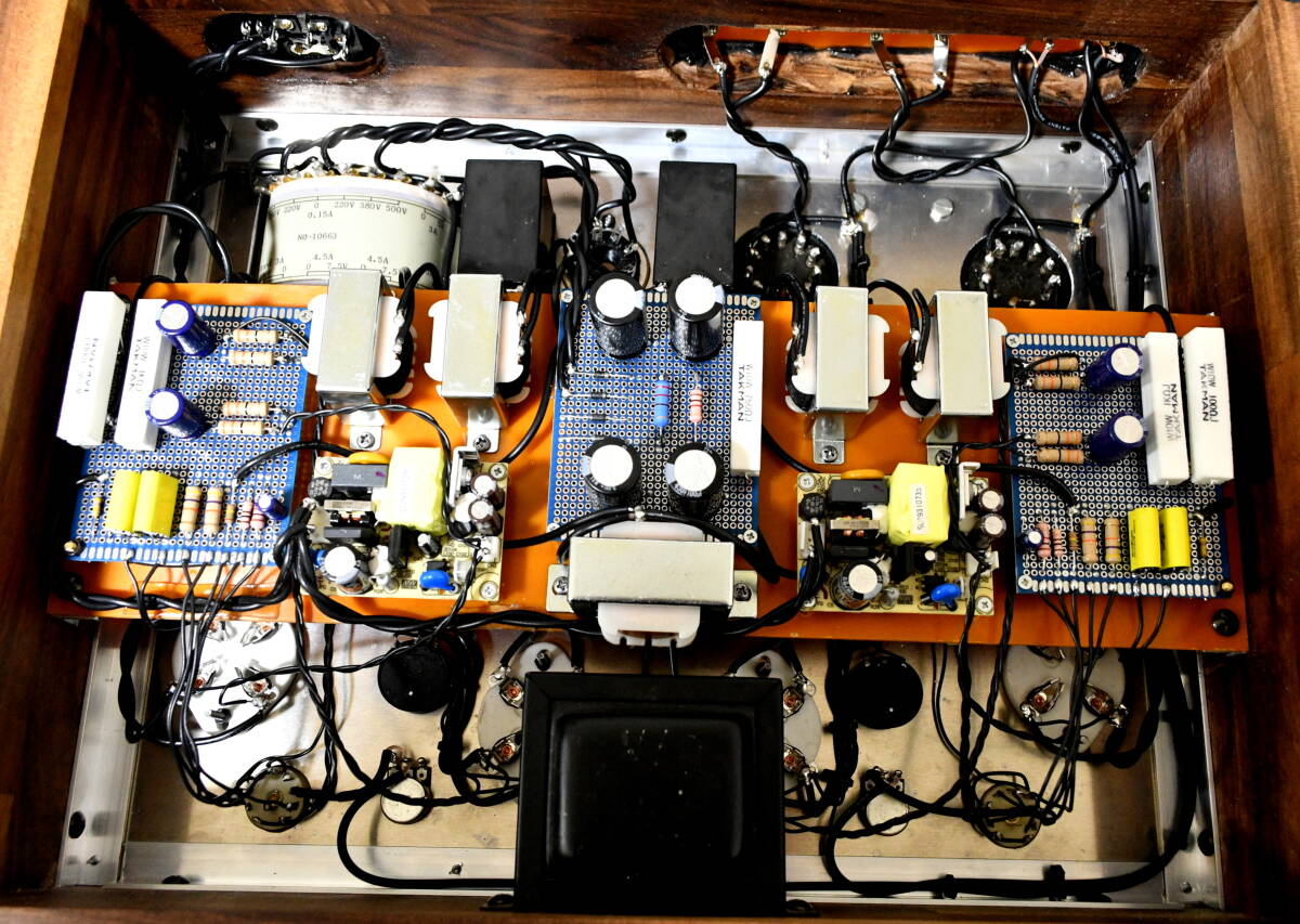 音楽性を重視したので、出力管のヒーターはAC(交流)ヒーターとしました。ノイズのレベルは僅か0.3mV以下なので、ハンム、ノイズを全く心配なく、感度の高いホーン・システムでも音楽がないときでもとても静かです。