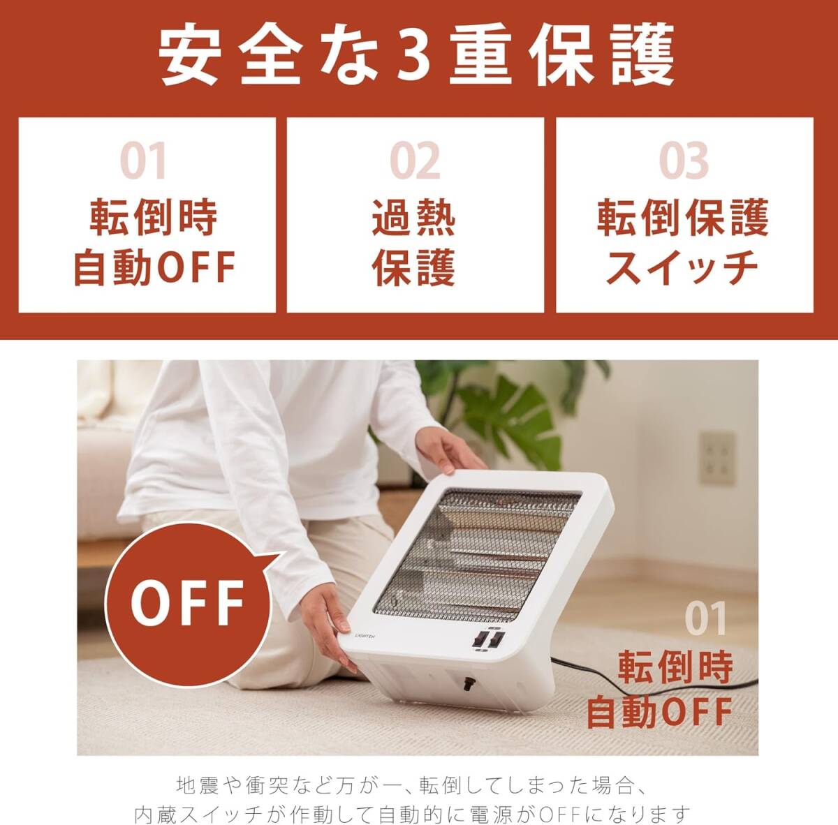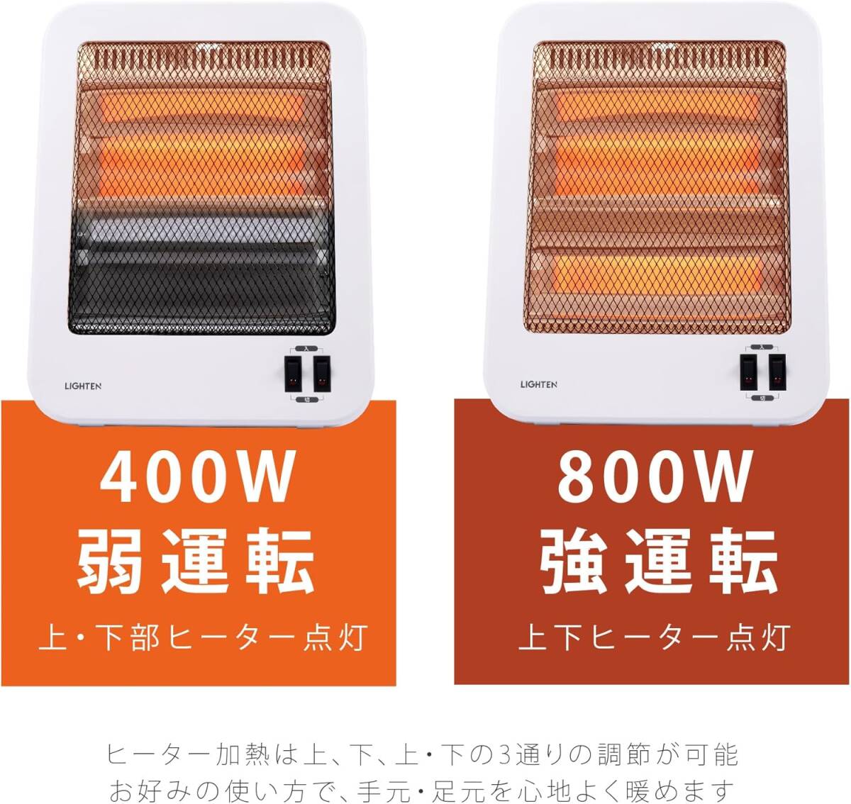 電気ストーブ ヒーター 暖房器具 足元 400W/800W 転倒時電源OFF 2段階切替 過熱保護 軽量 省エネ 持ち運び簡単 TT-HM-D003-IV wlj007/010