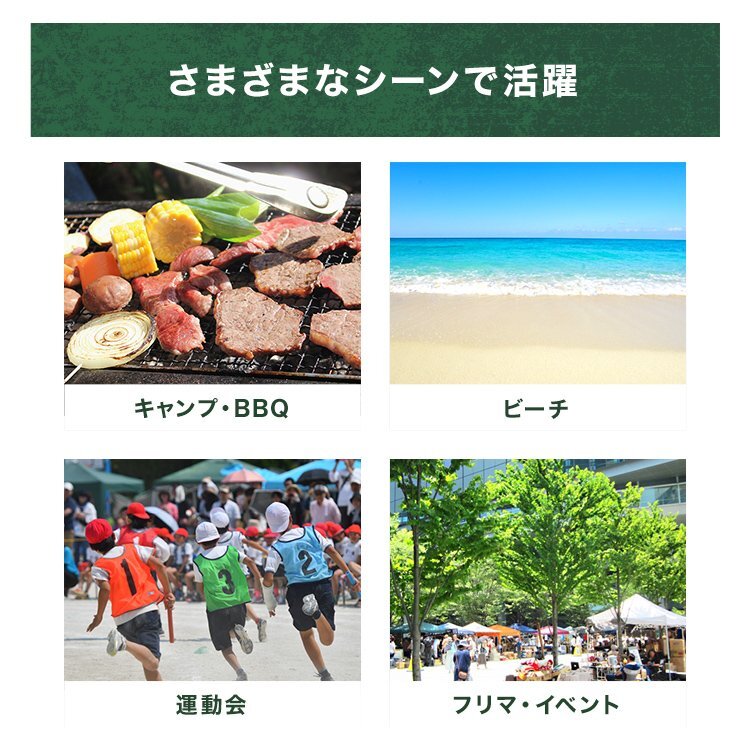 日よけで、直射日光から守る! ワイドなサイズ300×300cmのワンタッチタープテントです。 組み立てはワンタッチで簡単! 大人2人で持ち上げてゆっくり広げるだけ! フレームは強度で耐久性のあるスチール製を採用! アルミ製より少し重いですが、強度で安定性があります!! トップカバー上部には風抜けのベンチレーションを装備! テントの内側にたまる空気が通り抜け、風による倒壊事故対策になります。 風の強い日も安心! 急な雨が降っても安心の撥水加工が施されており、 大人数のバーベキューやスポーツ観戦、アウトドア、休憩所にぴったり。 シーンに合わせて3段階で高さ調節が可能です。 持ち運びに便利な専用収納バック付き! ■商品コード:ODTT11OR ■商品仕様 カラー:オレンジ 本体サイズ:(約)300cm×300cm×171~260cm 収納時サイズ:(約)119cm×21cm 本体重量:(約)12kg 材質:ポリエステル、スチール ■内容 タープテント本体 ロープ ×4 ペグ ×8 専用収納ケース ■注意事項 ・テント生地には撥水加工が施されていますが、雨天・豪雨下での完全防水を保証するものではございません。 ・風速5m以上の風の吹く場所でのご使用は、転倒や破損の原因になります。 ・設営の際は、2人以上で丁寧に作業を行い、しっかりと固定してください。 乱暴に扱いますと、故障や破損の原因になります。 ・海外製品で、簡易梱包での輸入のため風防に擦れや多少の小キズなどがある場合がございますが、 商品自体には問題ありませんのでご了承下さい。 ・商品は、モニターによって色合いが異なって見える場合があります。 ・仕様・デザインは改良のため予告なく変更することがあります。 ■保障期間 7日間 ※商品到着後7日以内の初期不良・破損のみご対応させていただきます。 【新品未使用品です】 |