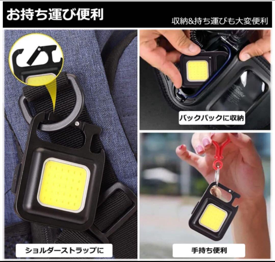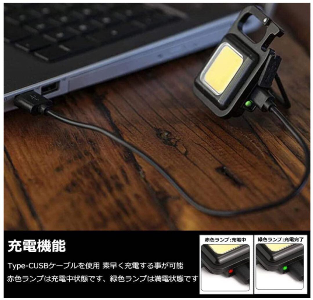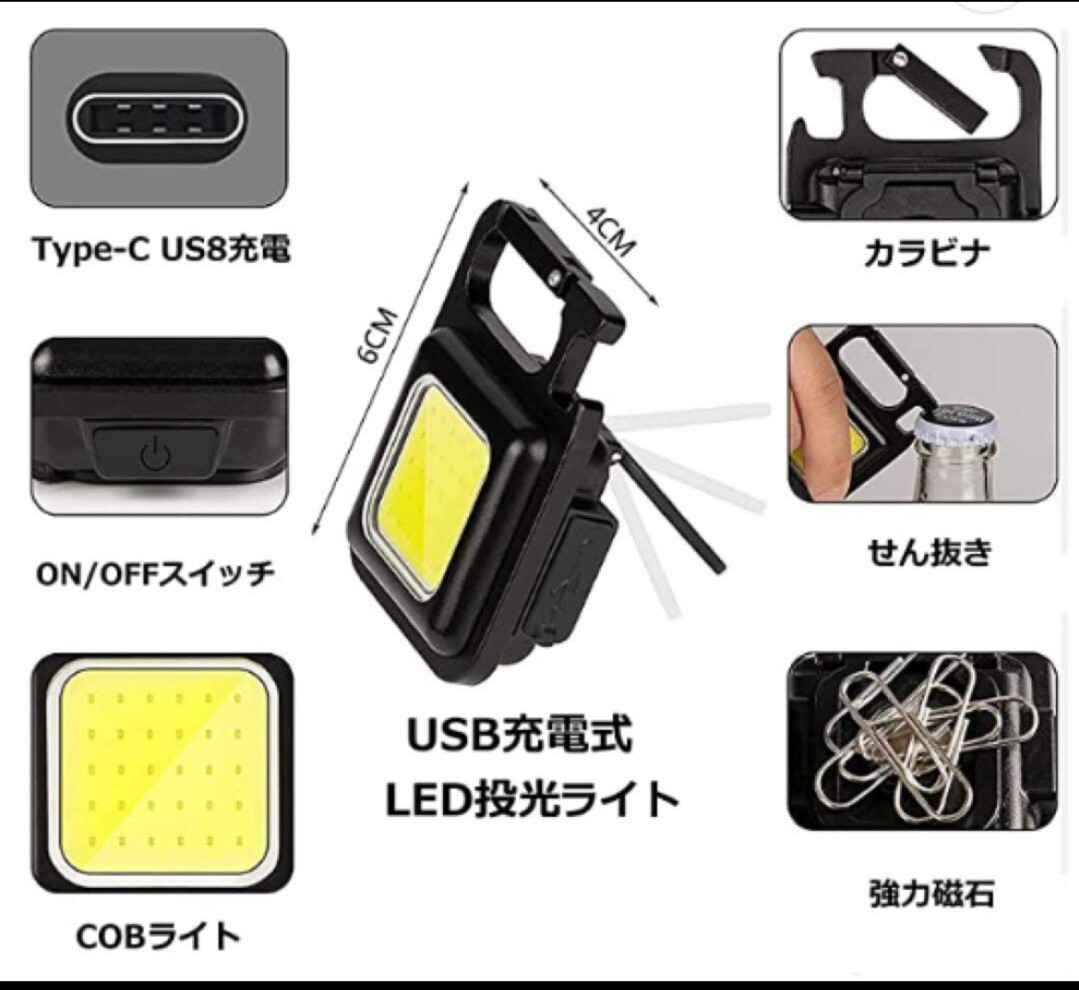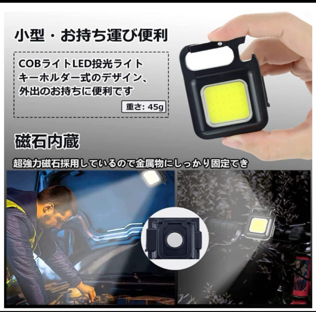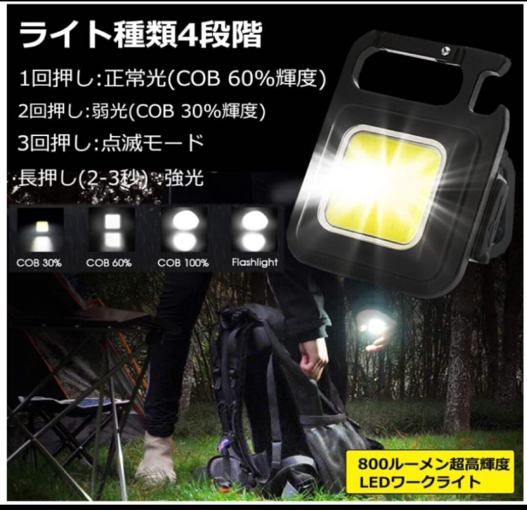 LED 投光器 COB 作業灯 ミニ懐中電灯 USB充電式 キーホルダー式 超ミニ 小型 軽量 800ルーメン 高輝度 4種点灯モード IPX4防水 強力磁石付き 緊急照明用 アウトドア用 釣り キャンプ 登山 ランニング 防災 地震 停電 作業用 LEDライト COBライト