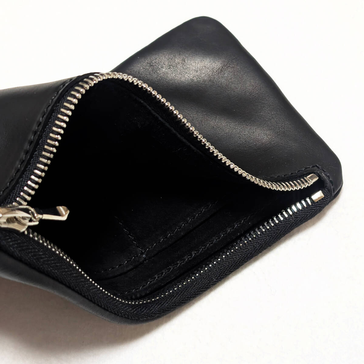 仕事の都合で発送まで最大1週間かかります。事前にご了承ください。トーチカの内縫い折財布。今年オーダーで購入したばかり、新品未使用の状態です。使われているレザーはGUIDI CALF、ジップはriri社製。通常エンボスで入っているロゴをなくしてもらっています。riri社製ジッパーのスライダーも通常とは別の物を取り寄せていただきました。表も中も全て黒で統一されたオールブラックのカラーリング。オーダーから実際に届くまでの間に、別の財布を購入してしまったためこちらを出品します。送料はこちらで負担します。正規品ですので、ご安心ください。ご不明な点はお気軽にご質問ください。