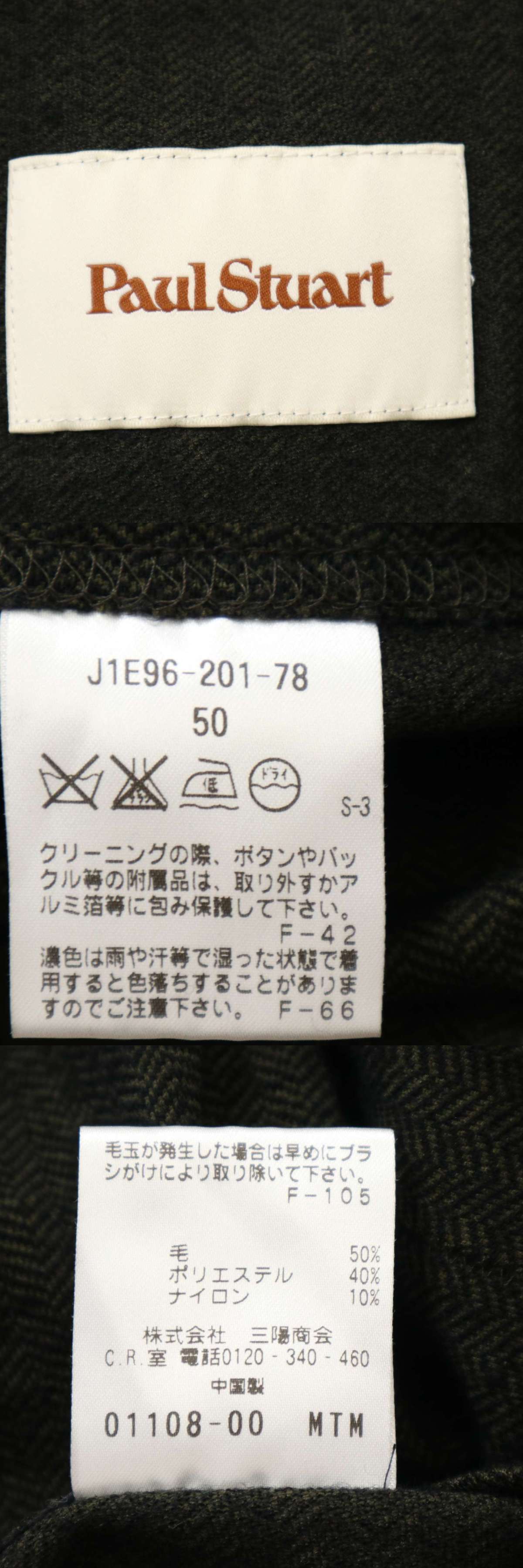 PAUL STUART ポール・スチュアート 秋冬 ウール★ ストレッチ ヘリンボーン テーラード ジャケット 薄手 Sz.50 メンズ