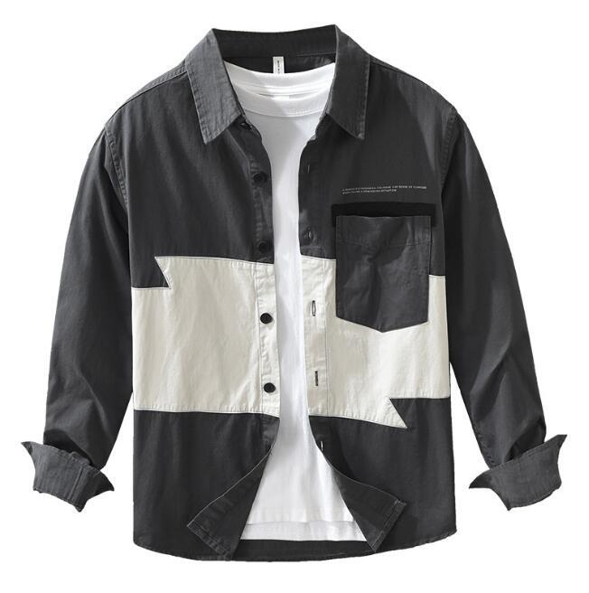 新作 シャツジャケット 春秋 長袖シャツ メンズ ワークシャツ カーゴ 切替 カジュアル コットン トップス グレー 3XL