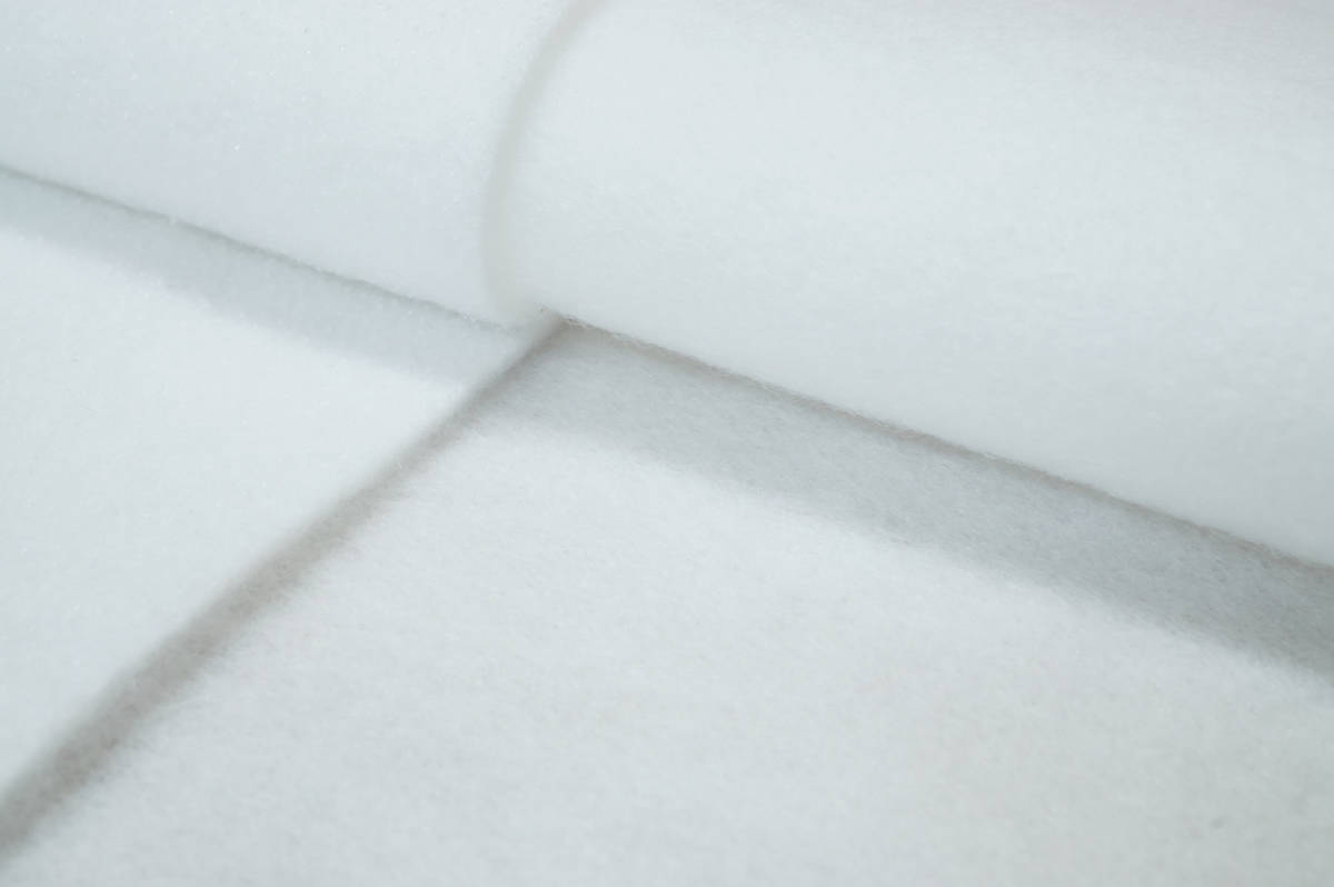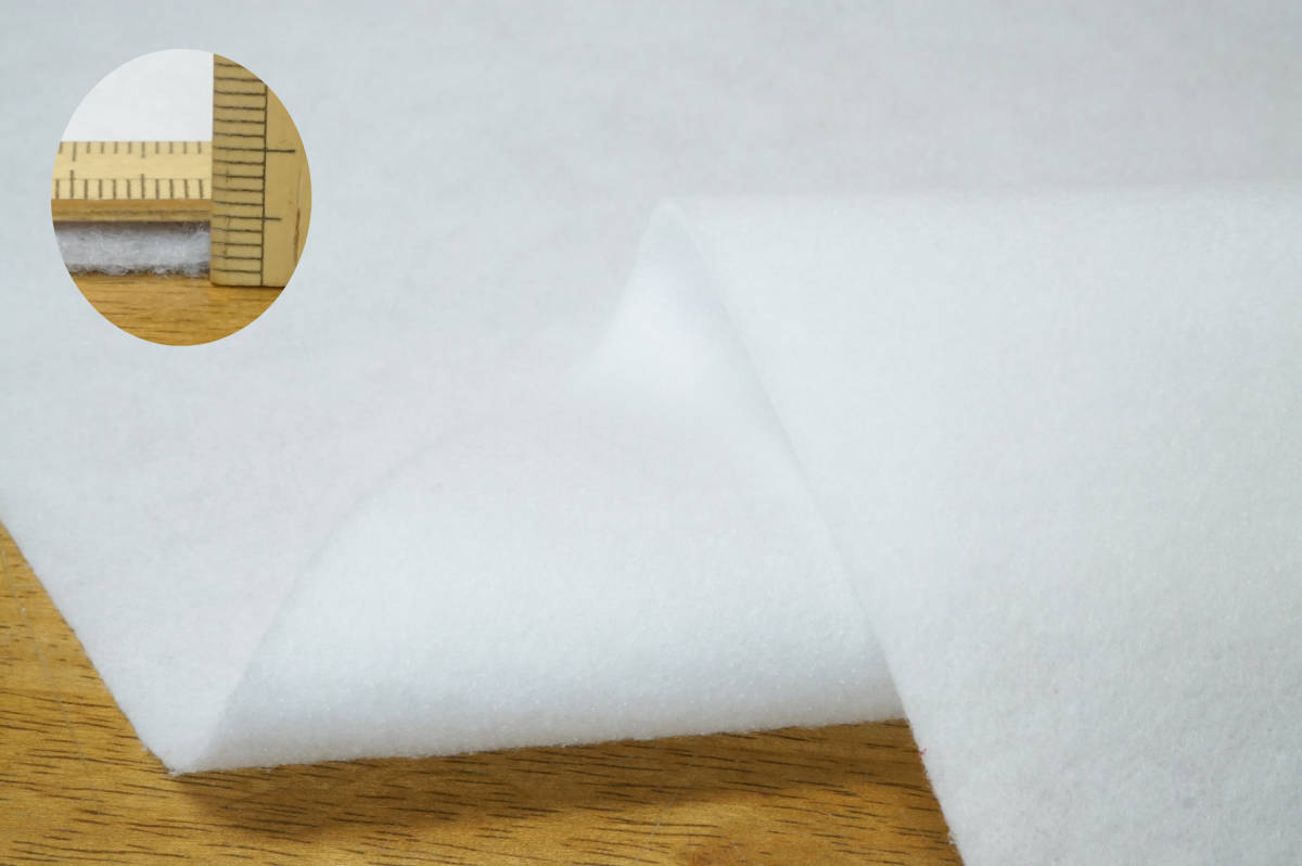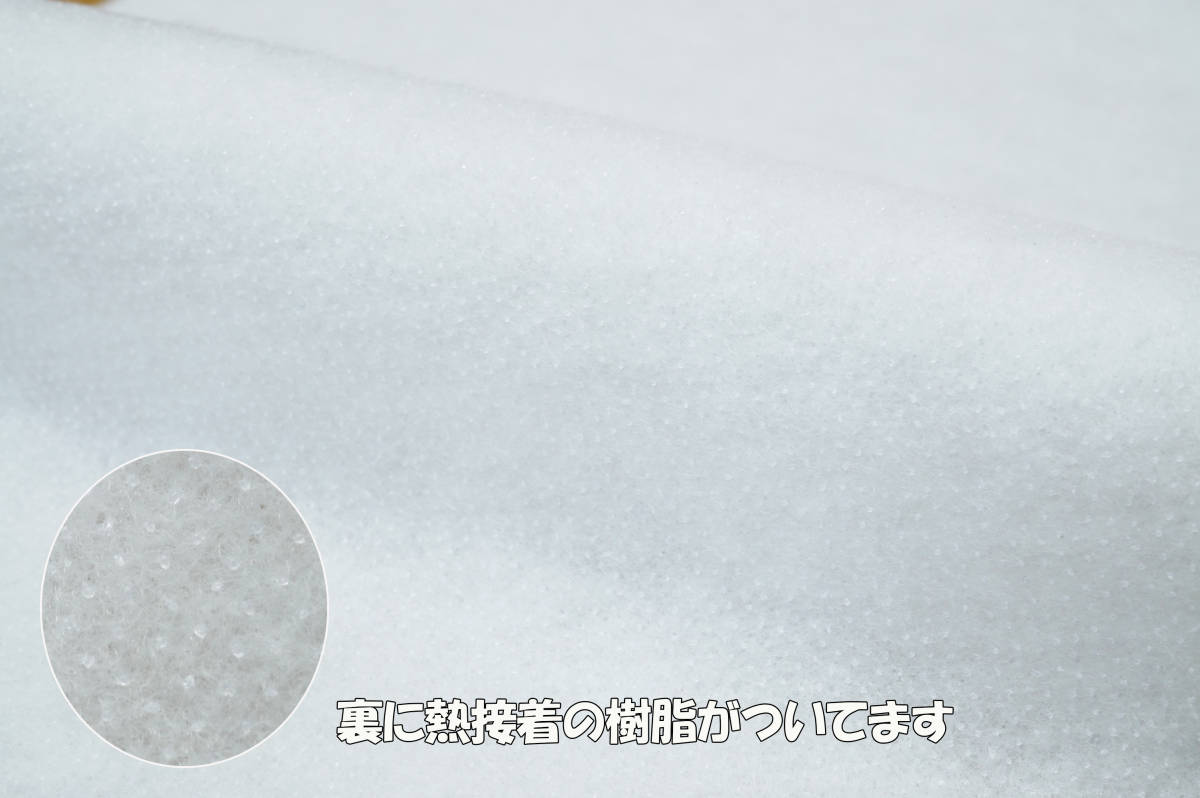 ポリエステル100%、微厚、ソフト系、やや圧縮系のシート状のわたで、生地に貼り付けて使用できるアイロン接着(片面)タイプでございます。