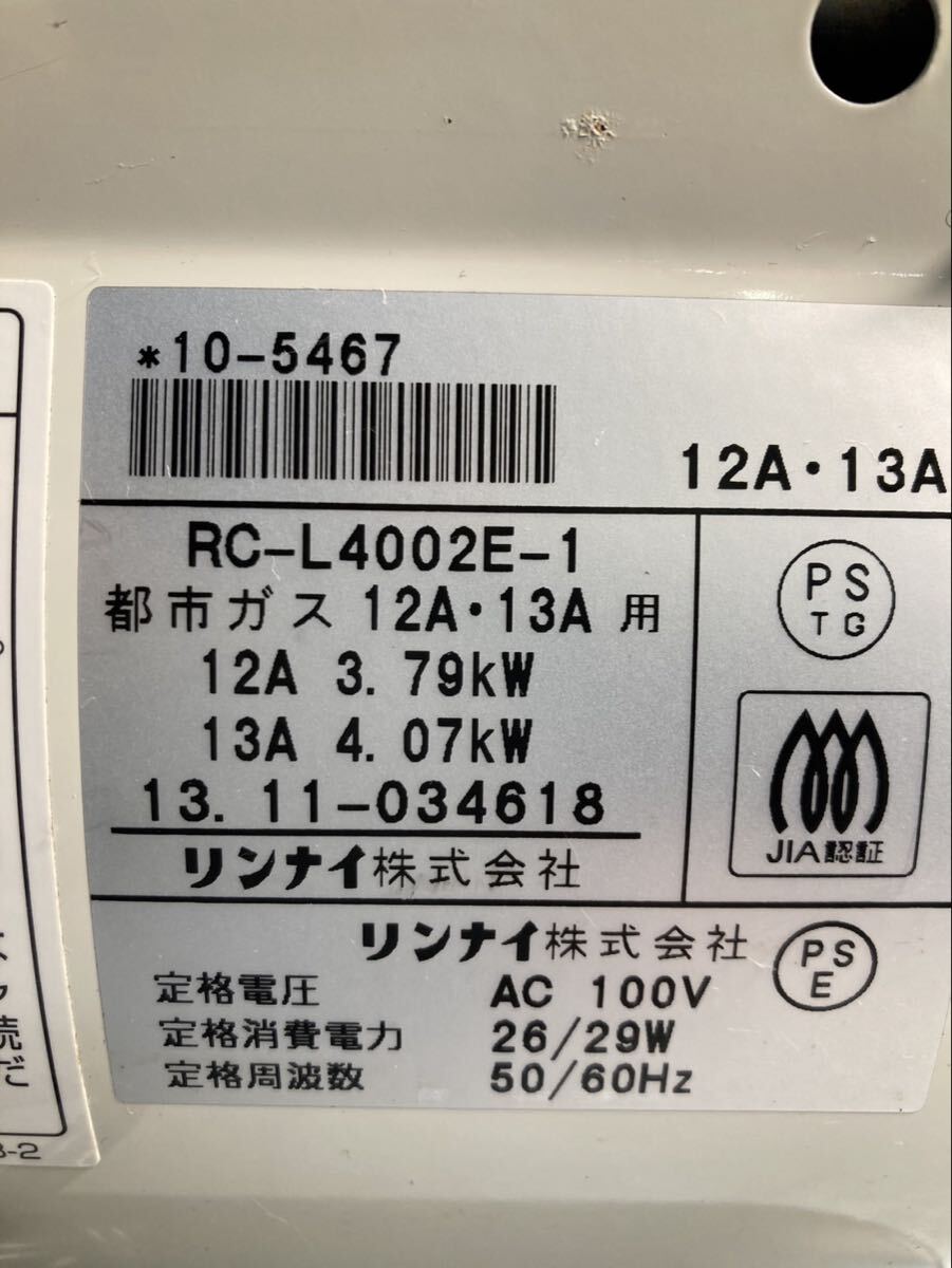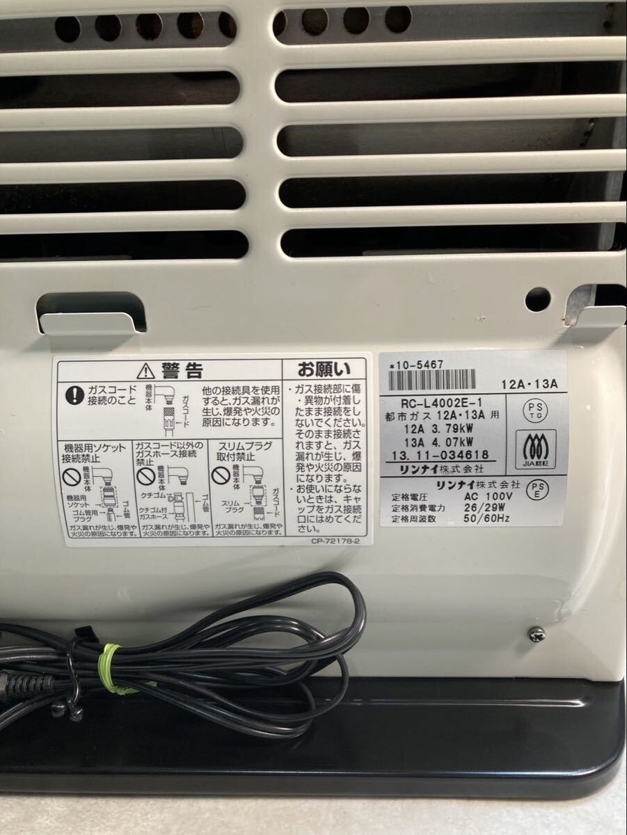 25【2013年製】 Rinnai リンナイ 都市ガス用 ガスファンヒーター 12A 13A 暖房器具 ガスストーブ RC-L4002E-1 ガスホース付属無し