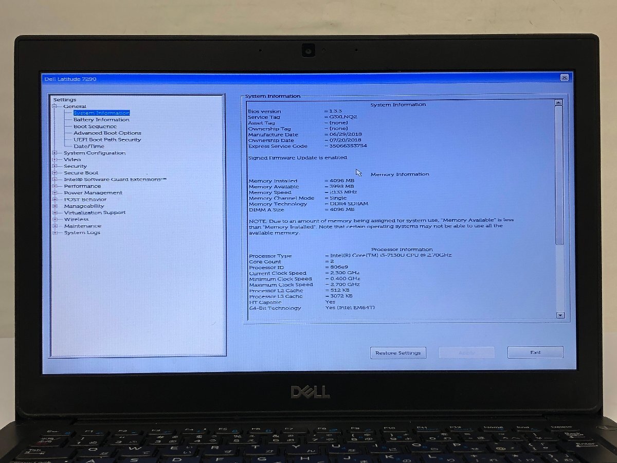 ジャンク/ Dell Latitude 7290 Intel Core i3-7130U メモリ4.1GB SSD256.06GB 【K23232】