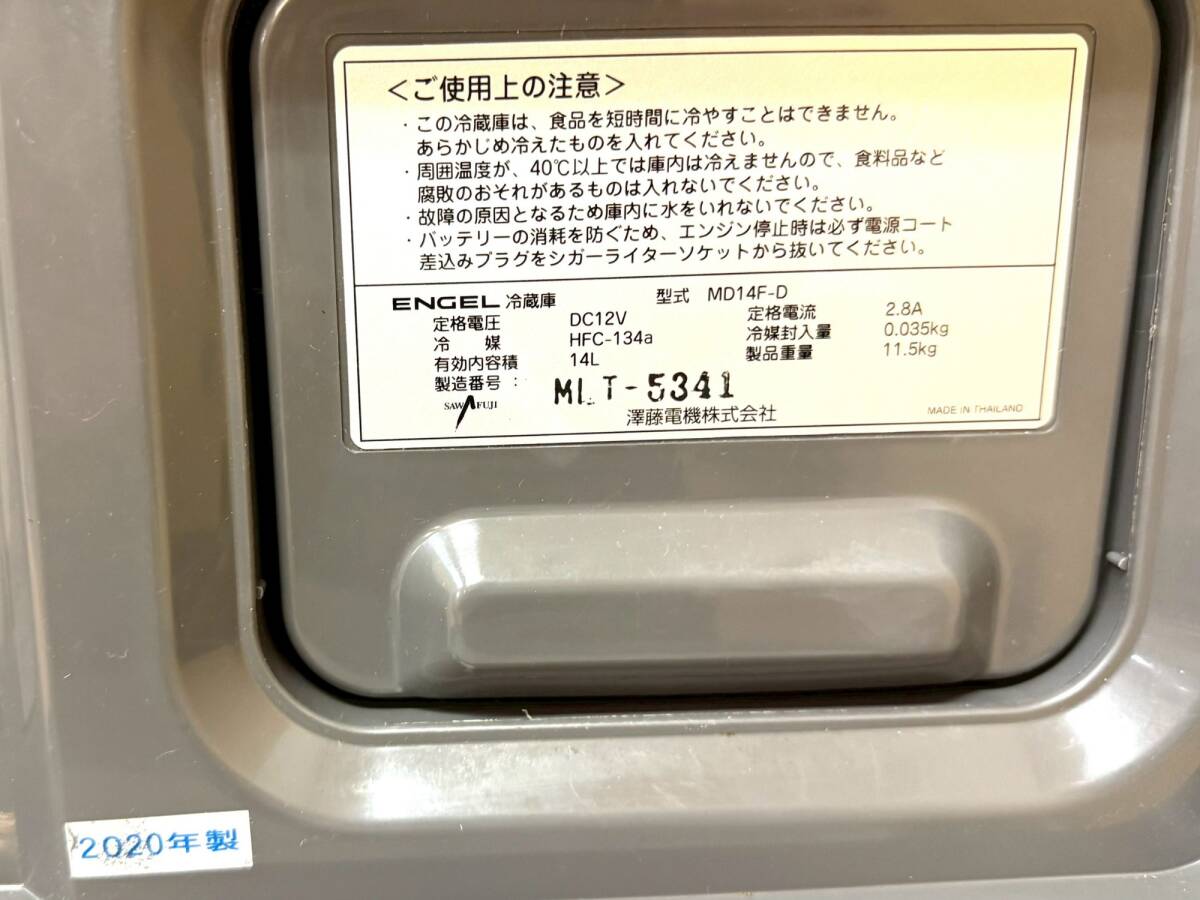 | 商品名 | 【 通電確認済み 】 ENGEL エンゲル ポータブル冷蔵庫 MD14F-D 2020年製 |