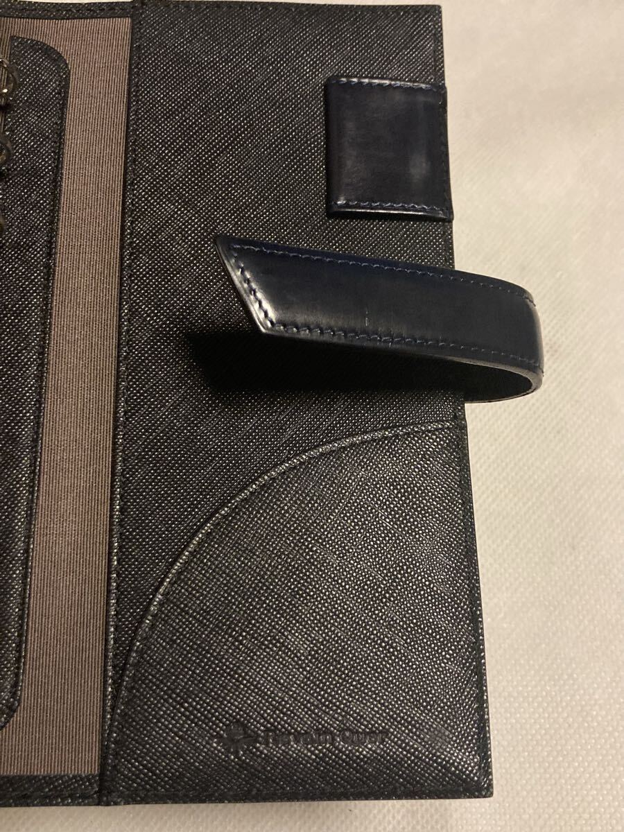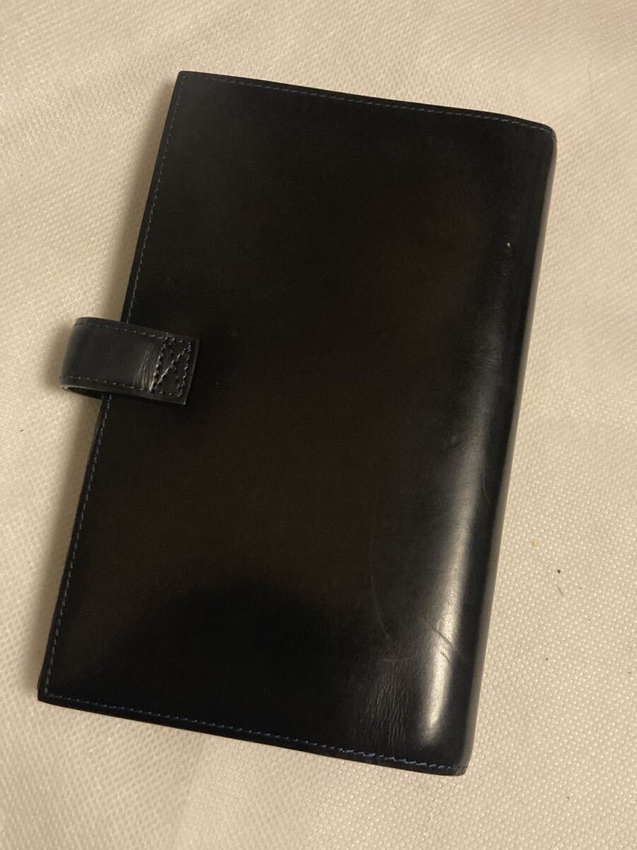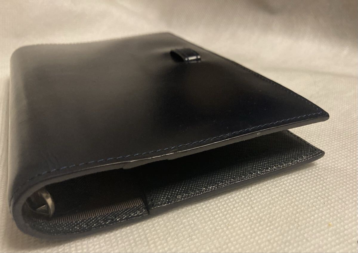 ◆ ブラックの合皮製で、サイズは12cmX19cm、厚さ2.3cmほどのバイブルサイズ。