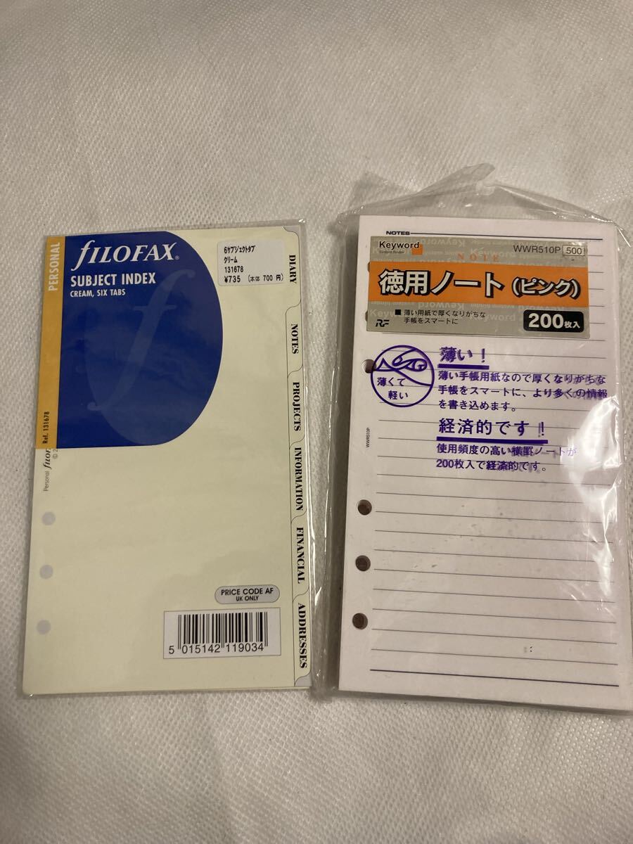 ◆ リフィルとして、ファイロファックス社製の仕切り板1セット、罫線ノート(200枚入り)をお付けします。