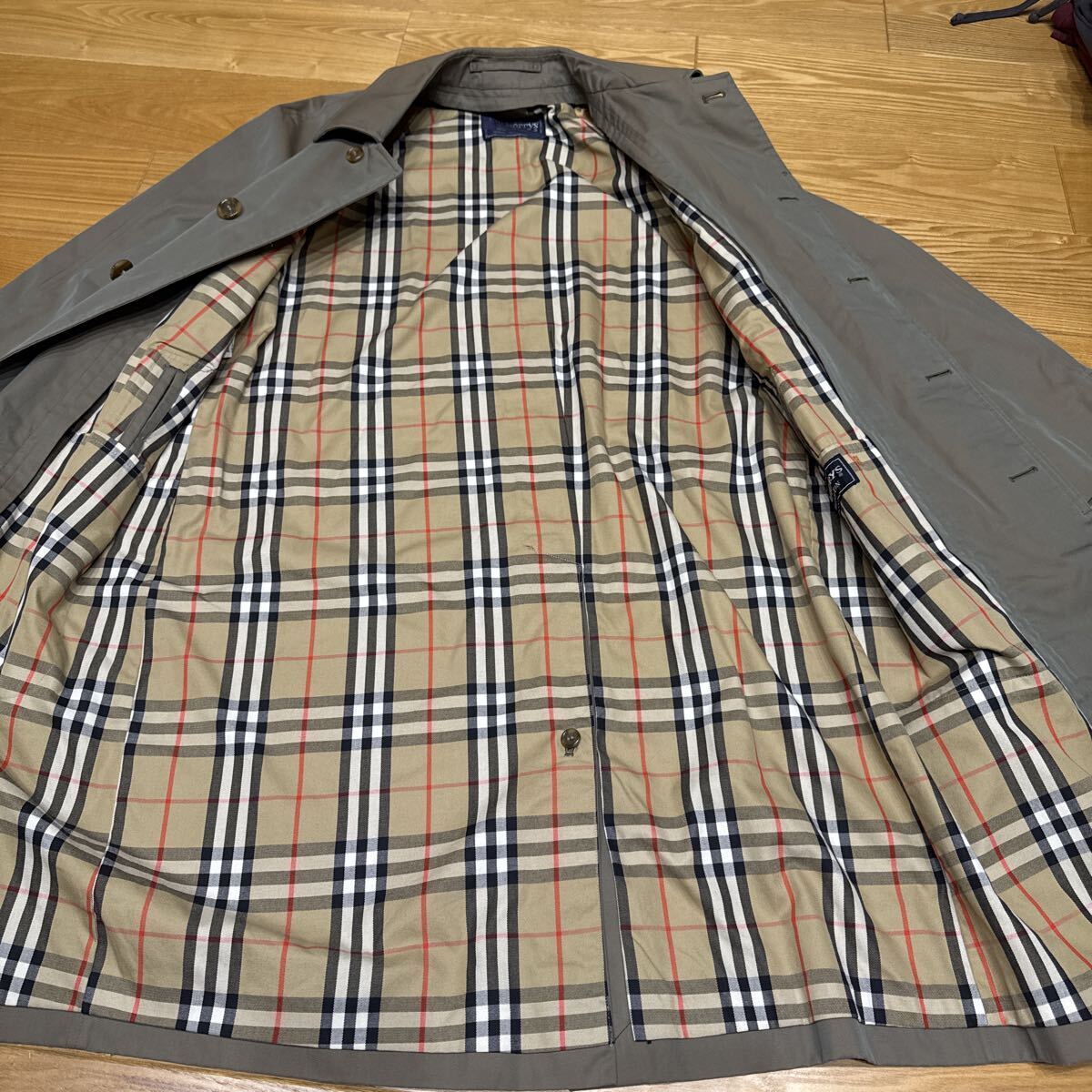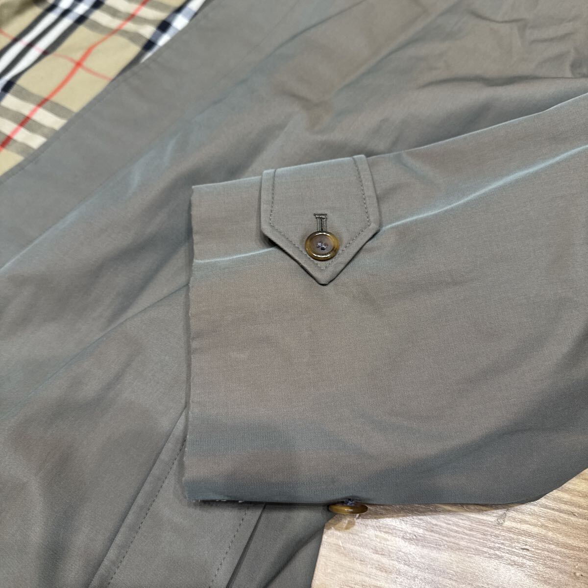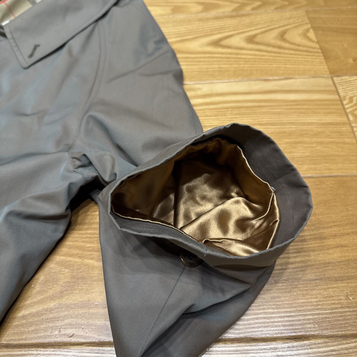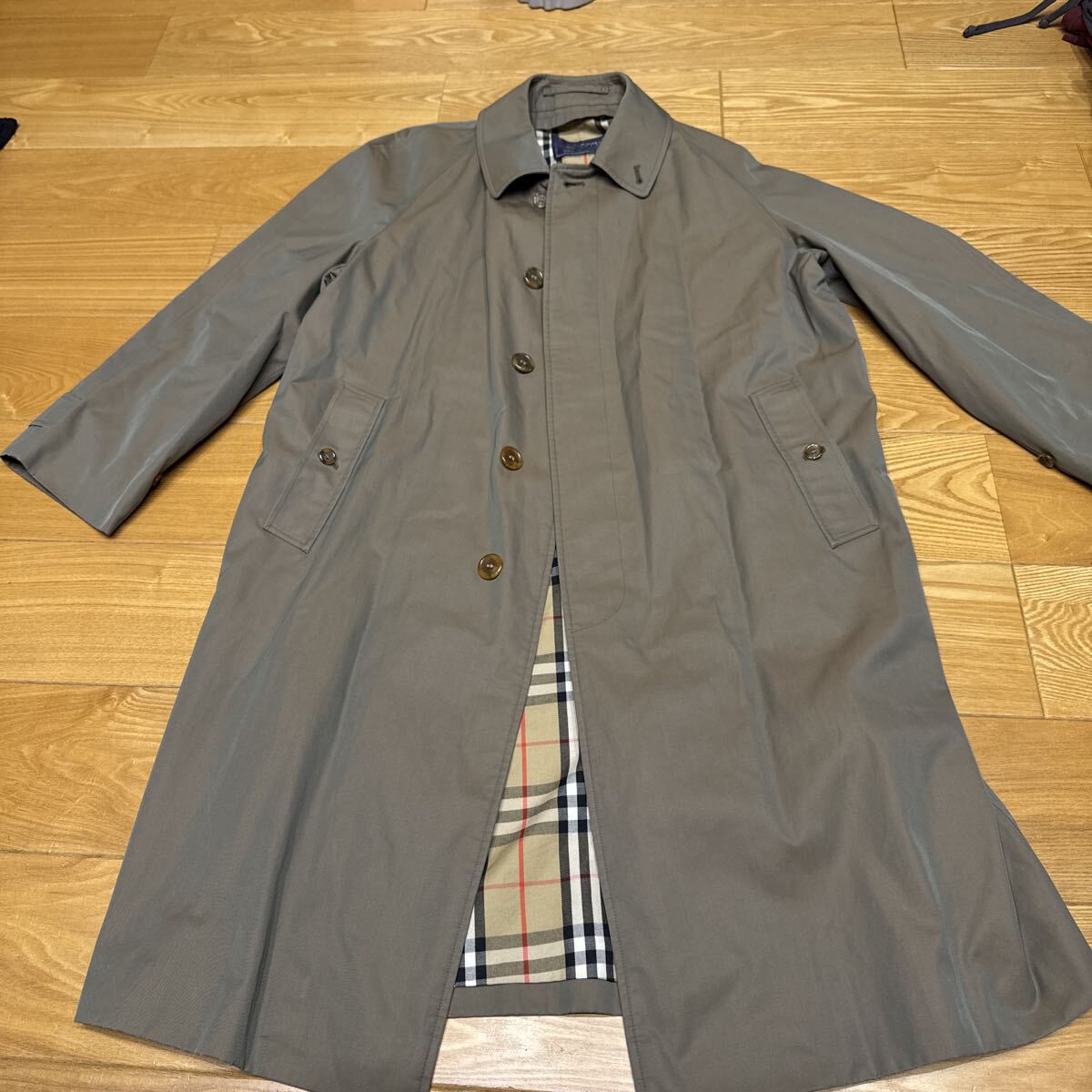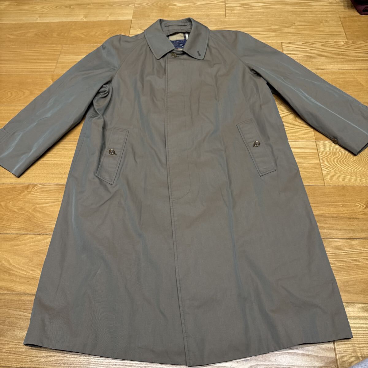 去年オークションで購入しましたサイズが合わないので安価で出品します。年々人気が上がってるバーバリーステンカラーコートです。カラーは玉虫色。脇下身幅59cm、ポケットのボタンあたりの身幅63cm、裾幅70cm。肩幅はラグランですがRのところまで47cm 着丈108cm イギリス製