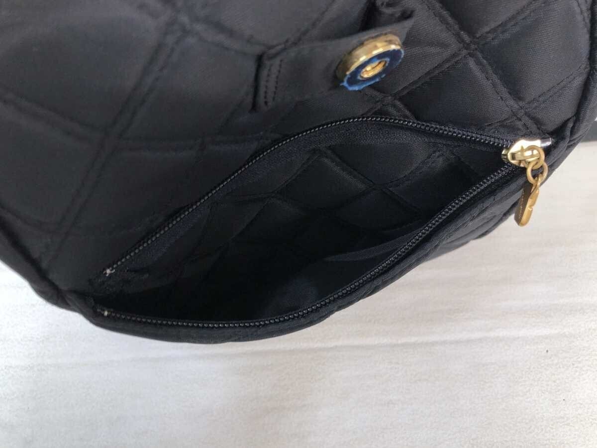 マリクレール marie claire レトロ クラシック ガーリー ゴールド金具 キルティング 巾着 リュック カバン レディース 背面ポケット有り 黒です。