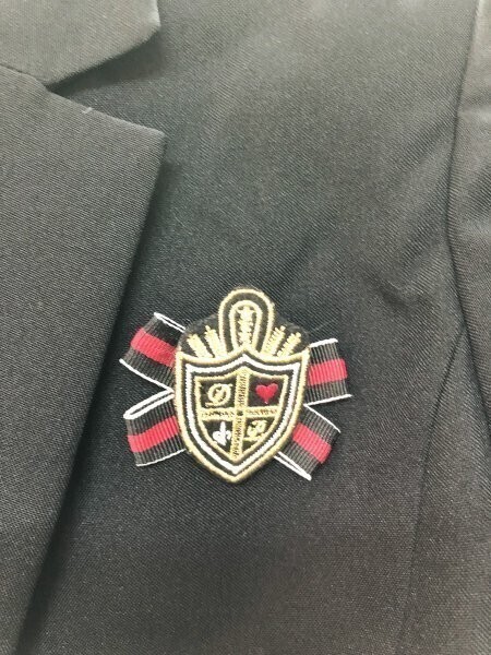 美品!DECORA PINKY’S デコラピンキーズ キッズ ブローチ付き 肩パッド入 フォーマルジャケット 160 黒 ポリエステル