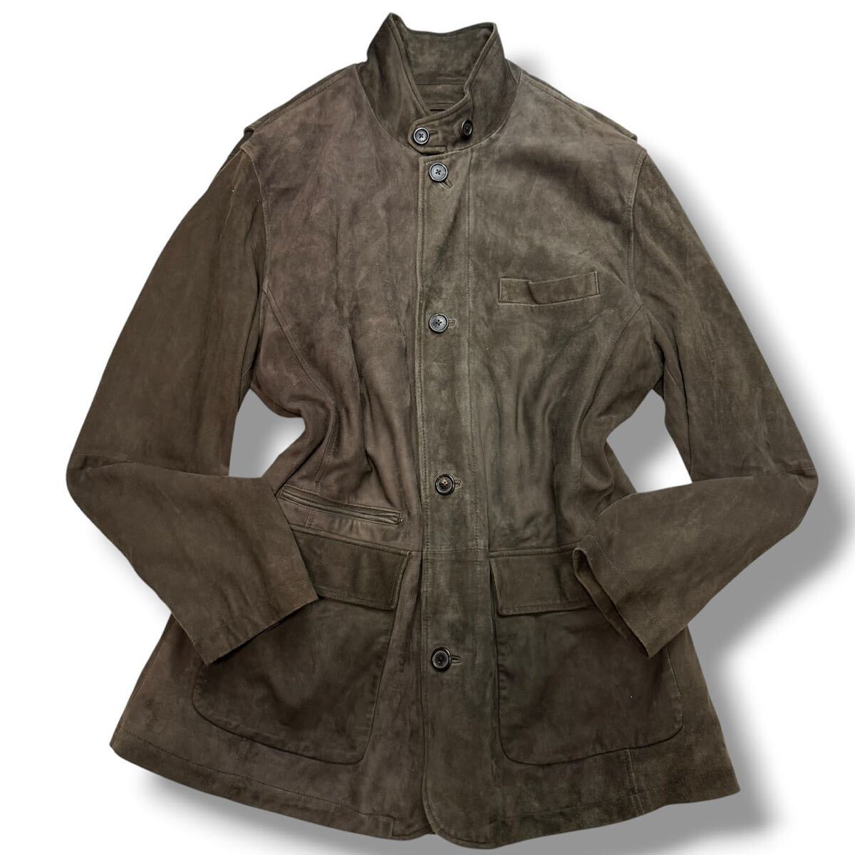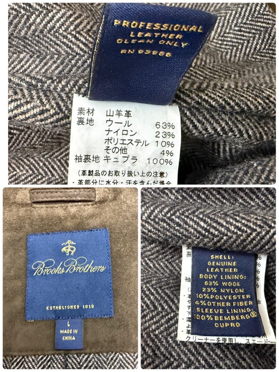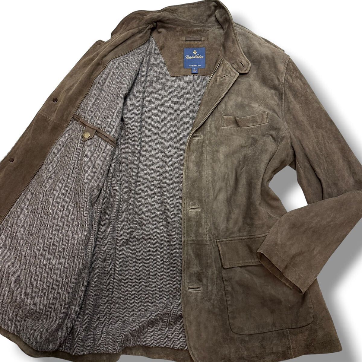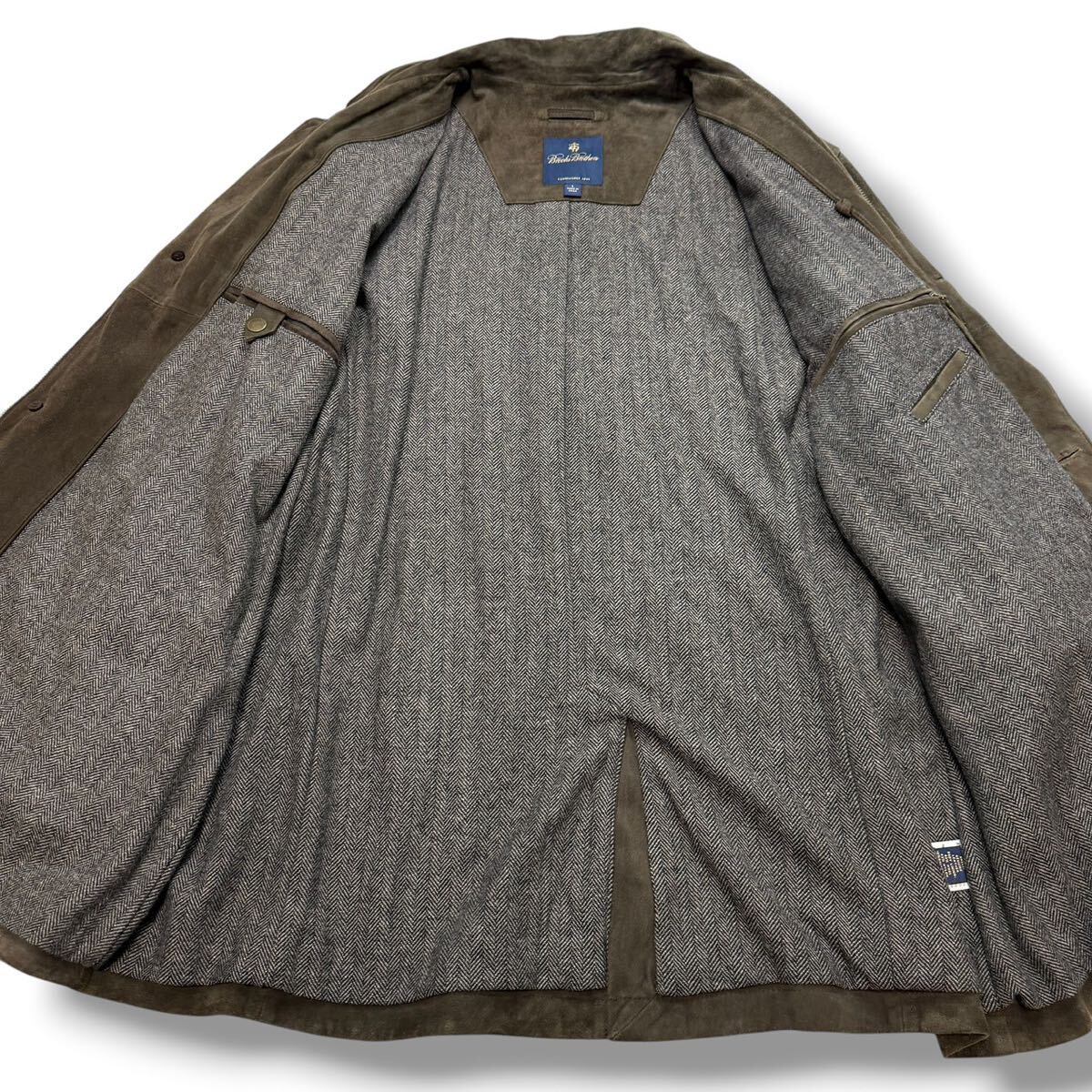 1374希少XL相当◎Brooks brothers ブルックスブラザーズ メンズ 山羊革 スエードレザー 裏地ヘリンボーン ツイード ブルゾン ジップアップ