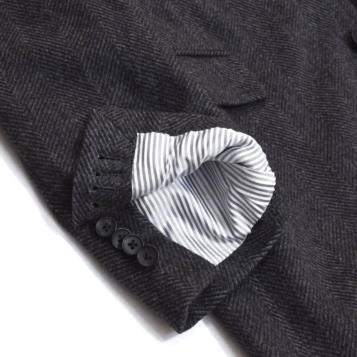 お色は上品なミディアムグレーのヘリンボーン柄です。