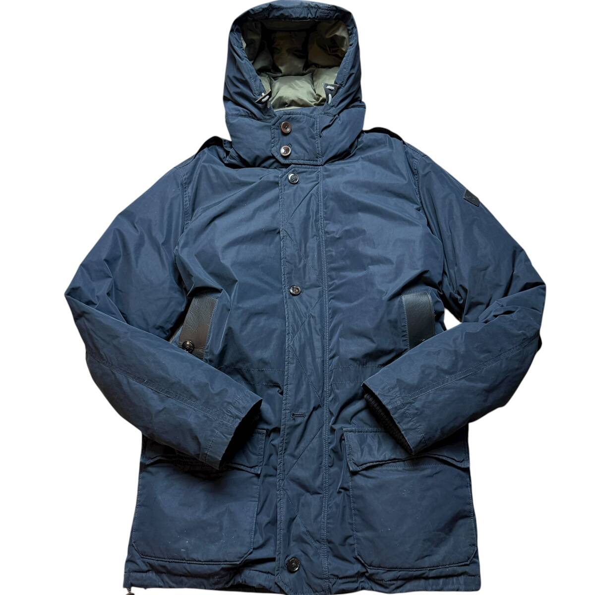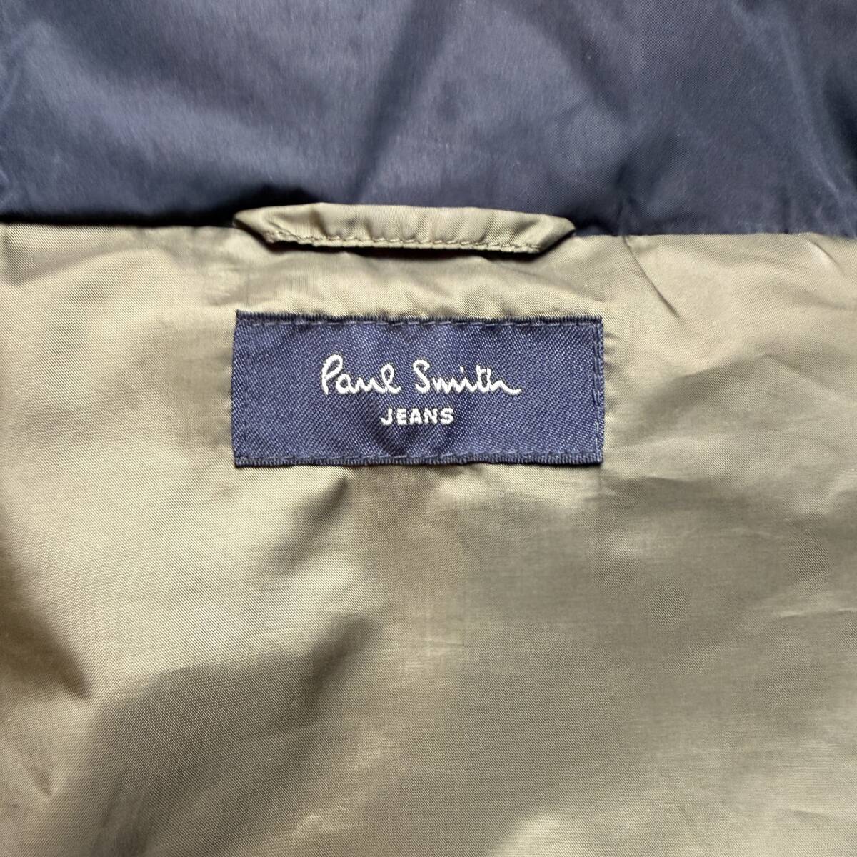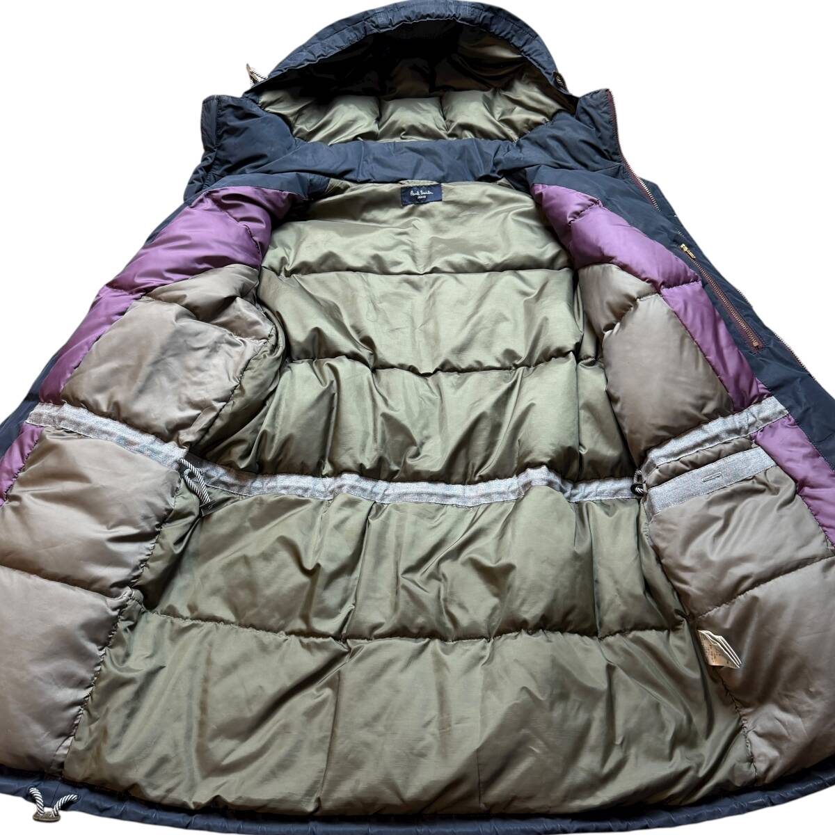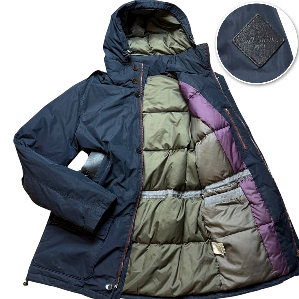 良品●希少XL Paul Smith 3533 ダウンジャケット レザー切替 ネイビー ポールスミス ブルゾン ダウンコート レザータグ 極暖 ジャンパー