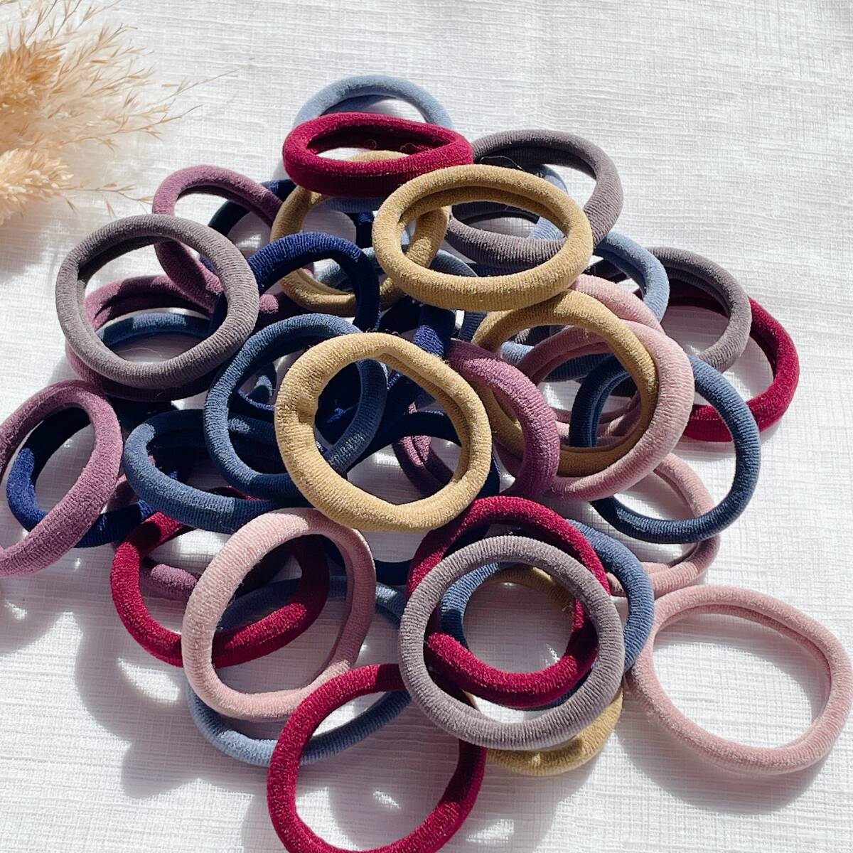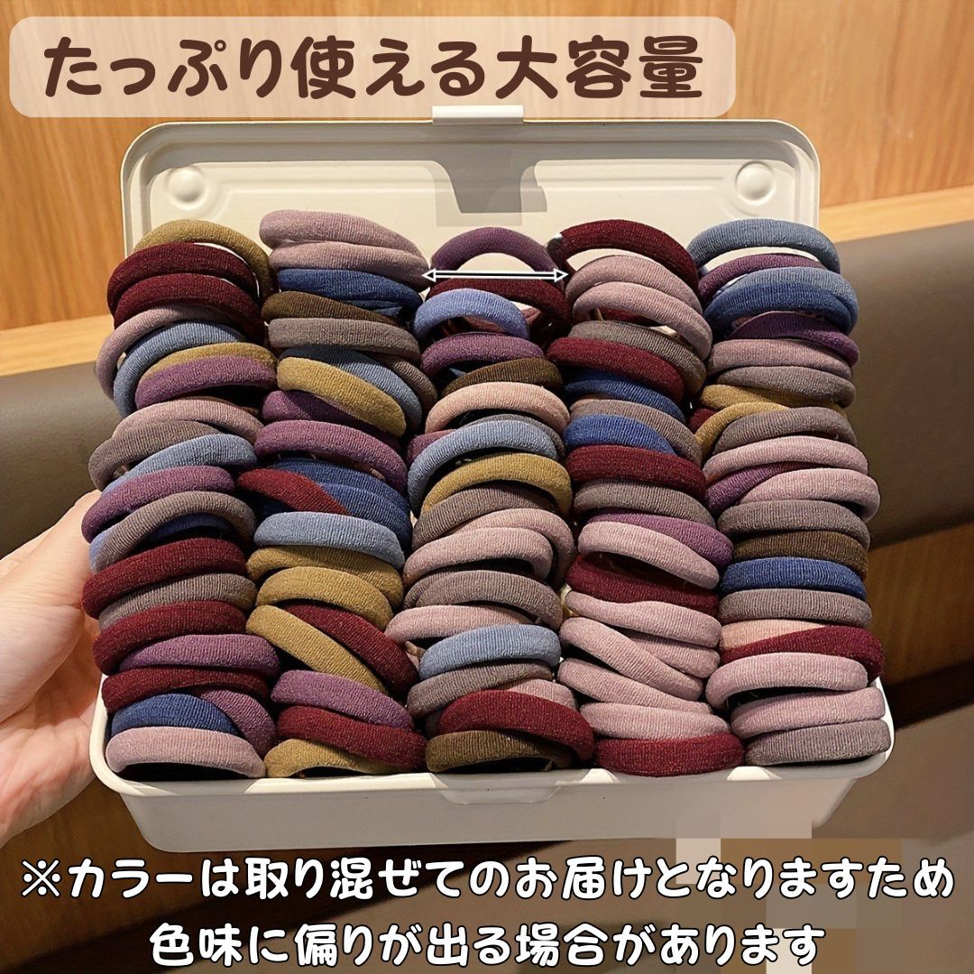 太めタイプのくすみカラーヘアゴム100本セットです。