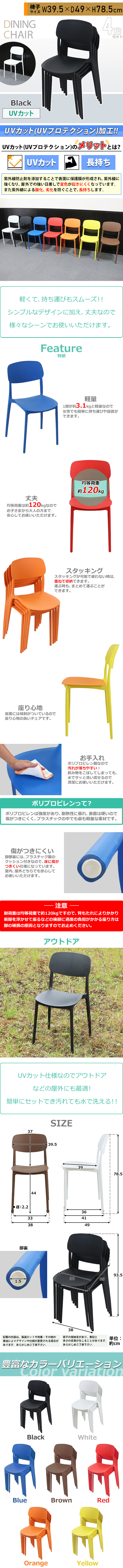 ●シンプルなデザインのポリプロピレン製ダイニングチェアです! ●丈夫なので様々なシーンでお使いいただけます。 ●UVカット加工によって屋外での強い日差しで変色しにくくなっています。 ●紫外線による酸化、劣化を防ぐことにより、長持ちする作りになっています。 ●スタッキング構造なので重ねる事が可能なので、収納やまとめて運ぶ際にも大変便利です。 ●材質は、軽量、安全、防水のポリプロピレン(PP)です。 ●完成品なので届いたらすぐにお使いいただけます。 注意! 背もたれによりかかり前脚を浮かせて座るなどの後脚に過度の負担がかかる座り方は脚の破損の原因となりますのでお止めください。 ■重量:約3.1kg(1脚あたり) ■均等荷重:約120kg ■材質:PP[ポリプロピレン](本体)、プラスチック(脚裏) ●商品のカラーはブラックとなります。 ●新品商品ではありますが、輸入商品の為、多少の擦り傷などがある場合がございますので、ご納得の上ご購入下さいませ。 ●ご購入後、お客様ご都合によるご返品、ご返金等は一切お受け致しておりません。 ●本商品を使用した際に発生したトラブル、事故につきまして、当社は一切の責任を負いません。ご使用に関しましては、全て自己責任にてお願い致します。 |