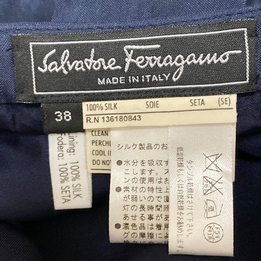商品名:Salvatore Ferragamo サルヴァトーレフェラガモ プリーツスカート サイズ38 ネイビー