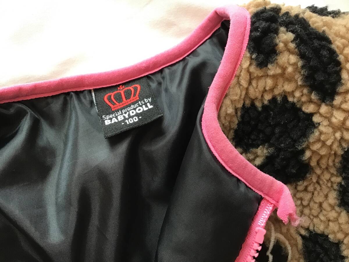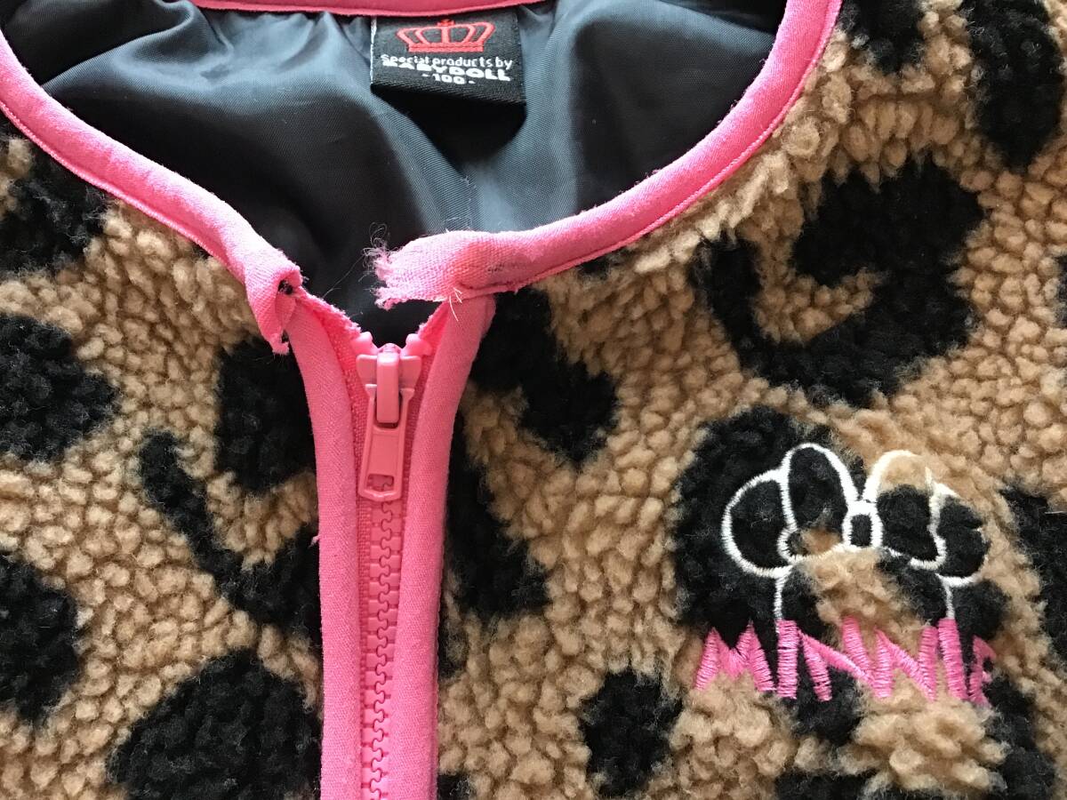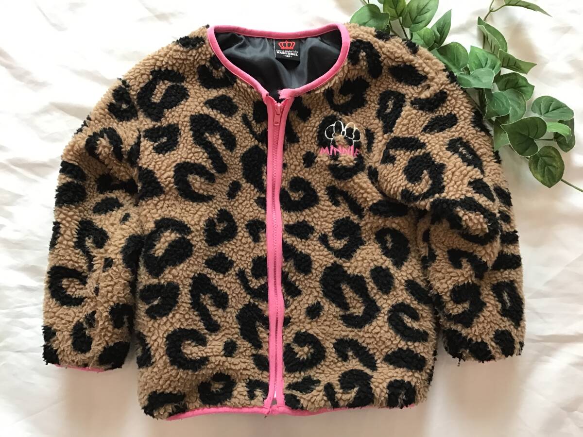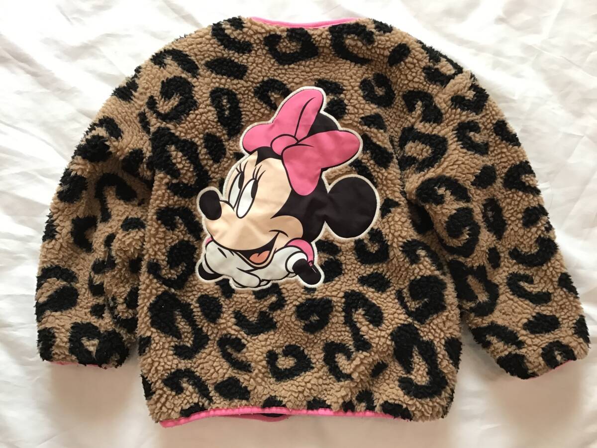 ミニー ベビードール 100cm アウター 中綿 ボア ヒョウ柄 フリース ジャケット ディズニー 豹柄 子供 キッズ 女の子 古着 ☆