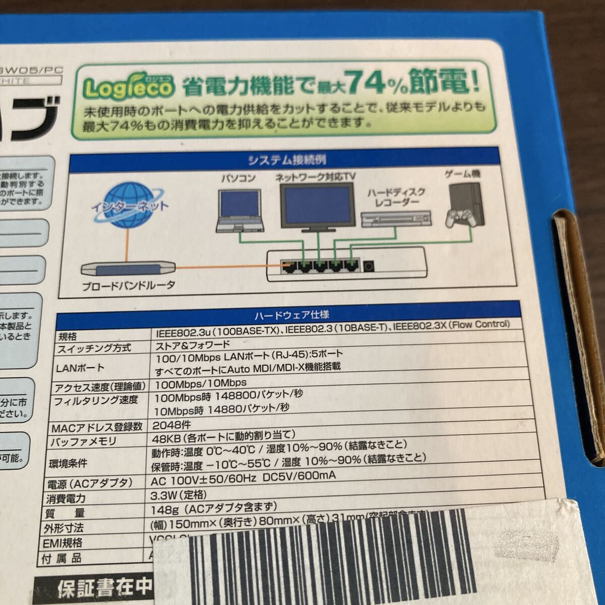 Logitec スイッチングハブ 5ポート プラスチックケース 電源外付 10/100Mbps ホワイト LAN-SW05/PH