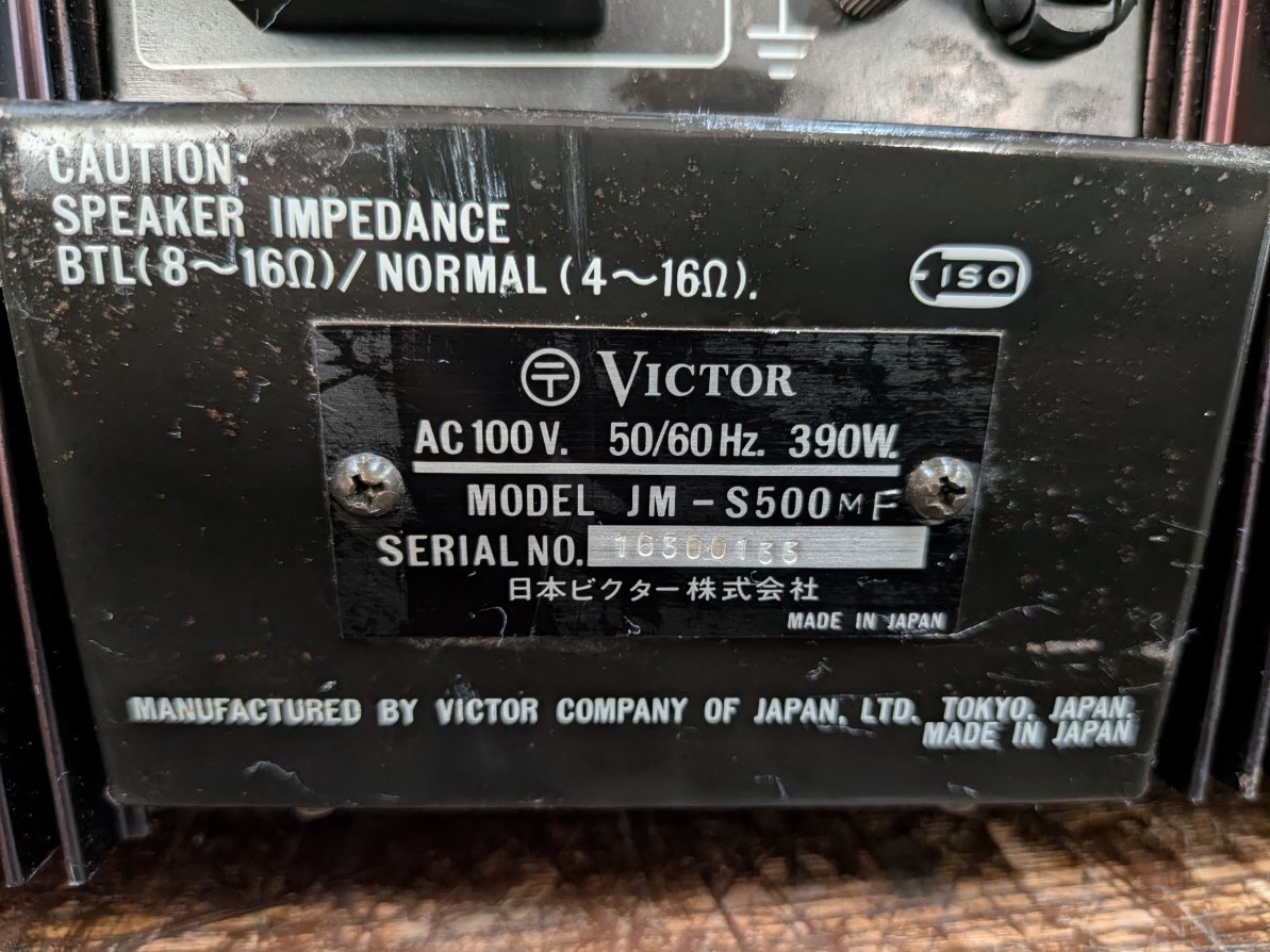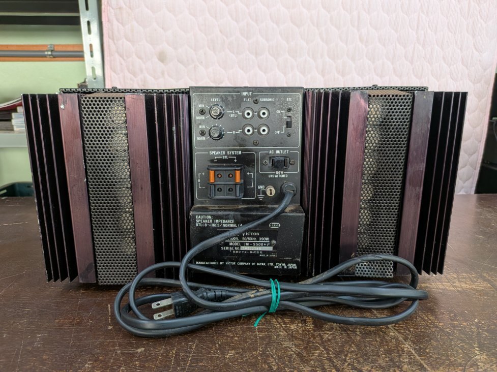 | 商品説明 | 希少 VICTOR ビクター JM-S500MF パワーアンプ 390W プロフェッショナル 受注生産品 手持ちオーディオに接続し音出し確認済みです。 音質等は分かりません。 簡易確認ですので現状品をご理解ください。 後部アルミ部分に変形箇所があります。(画像でご確認ください。) 中古品ですので傷・汚れ等はあります。 状態は画像でご確認ください。 |