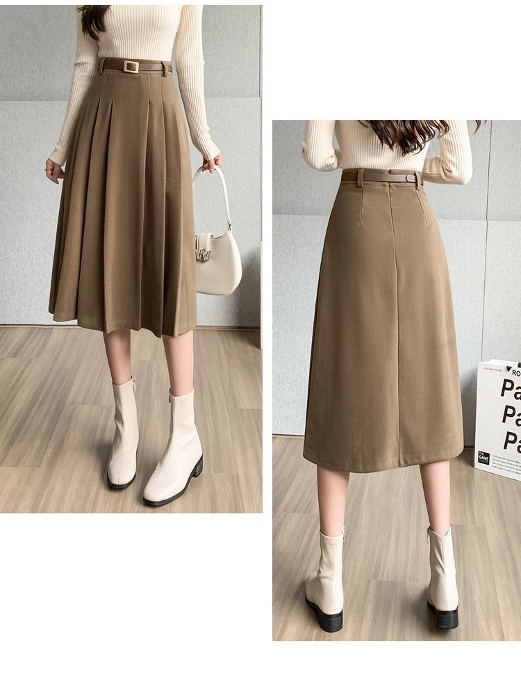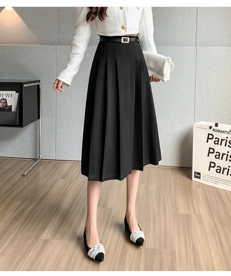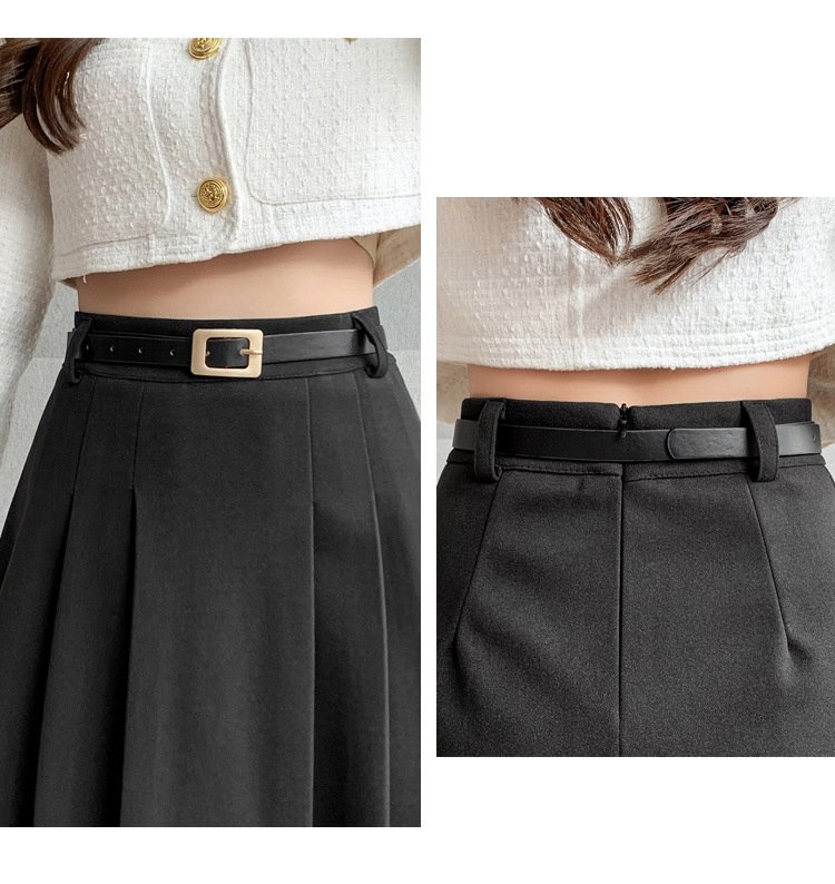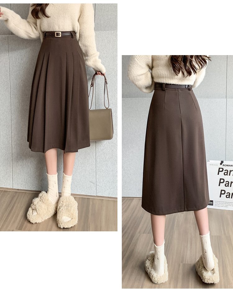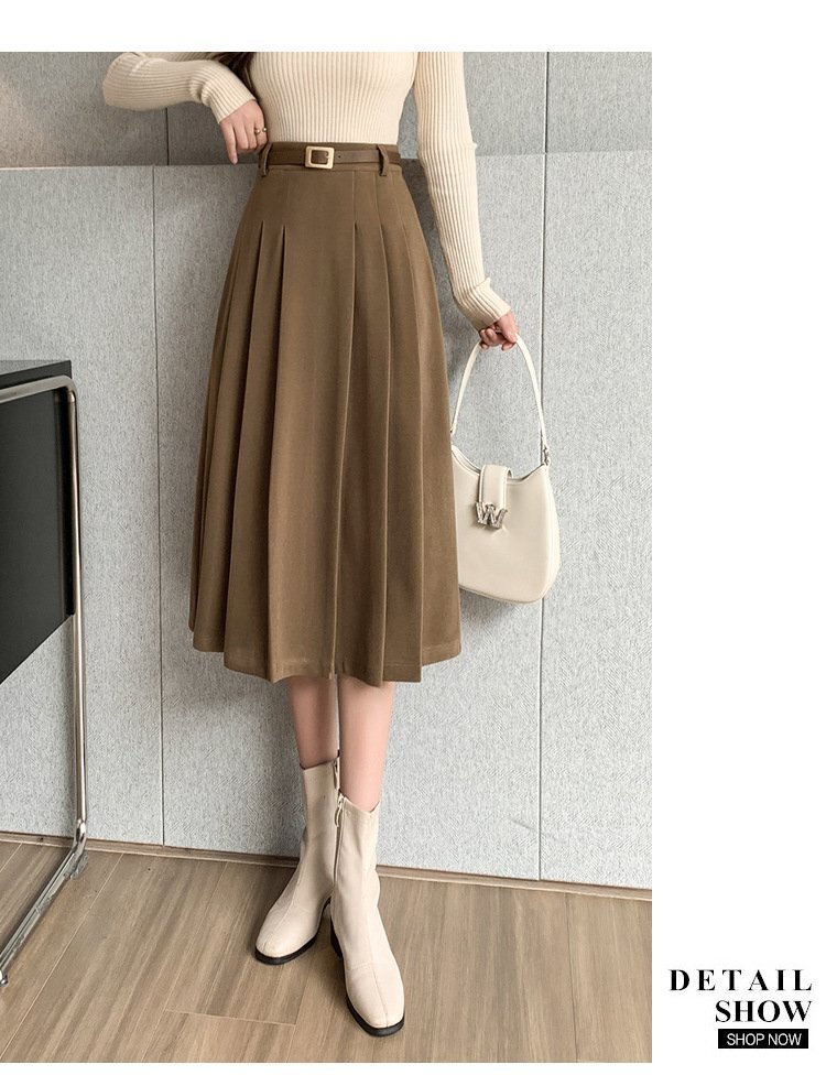 プリーツスカート レディース ロング スカート 春 秋 冬 スカート 膝下 Aライン 着痩せ 復古 無地 ベルト付き★3色選択可/S~XLサイズ