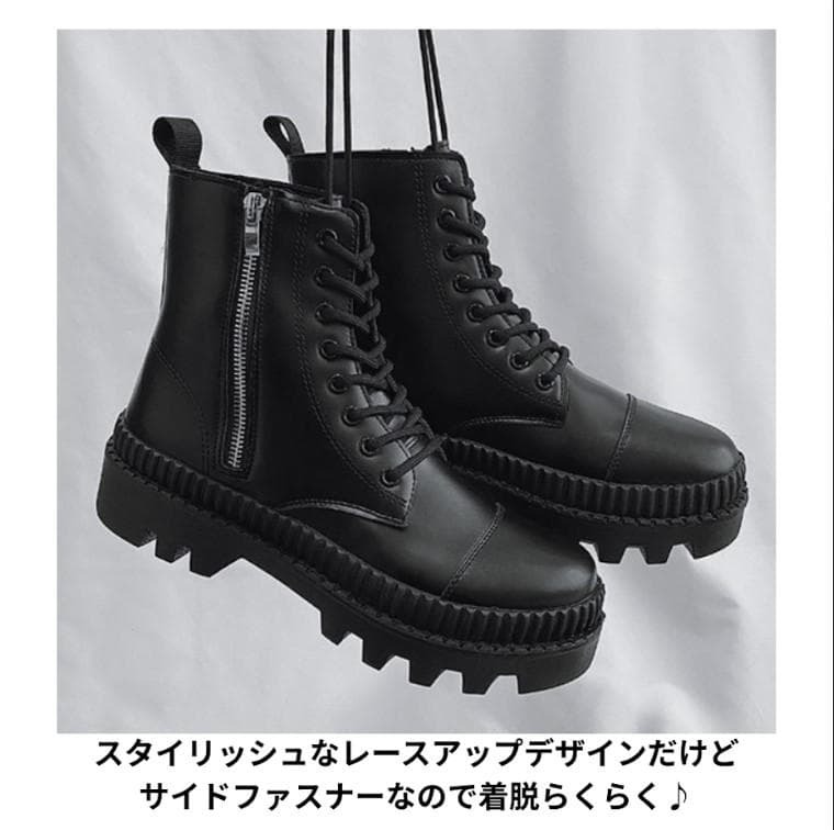 スタイリッシュなレースアップのデザインですが、サイドにジッパーが付いているので簡単に脱いだり履いたりできます。