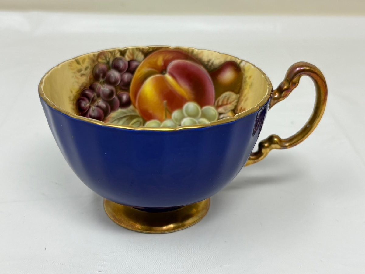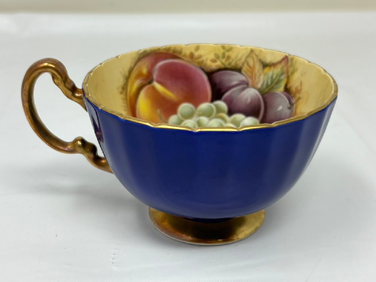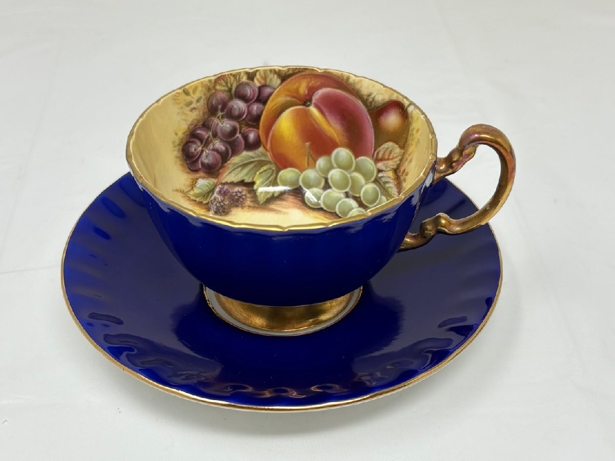 ◆保管品 AYNSLEY エンズレイ カップ&ソーサー 青色 オーチャードゴールド 中古扱い◆18534