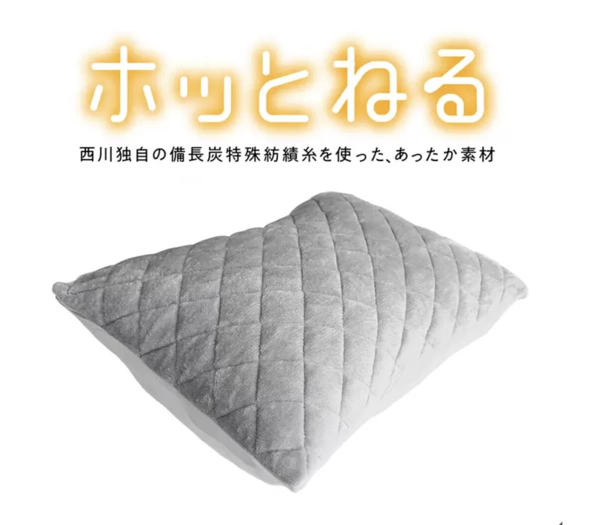 触れた瞬間から暖かい吸湿発熱素材を使用しており、寝具メーカー西川独自の備長炭特殊紡績糸を練り込んだ中わたで速暖性が高いとされています。