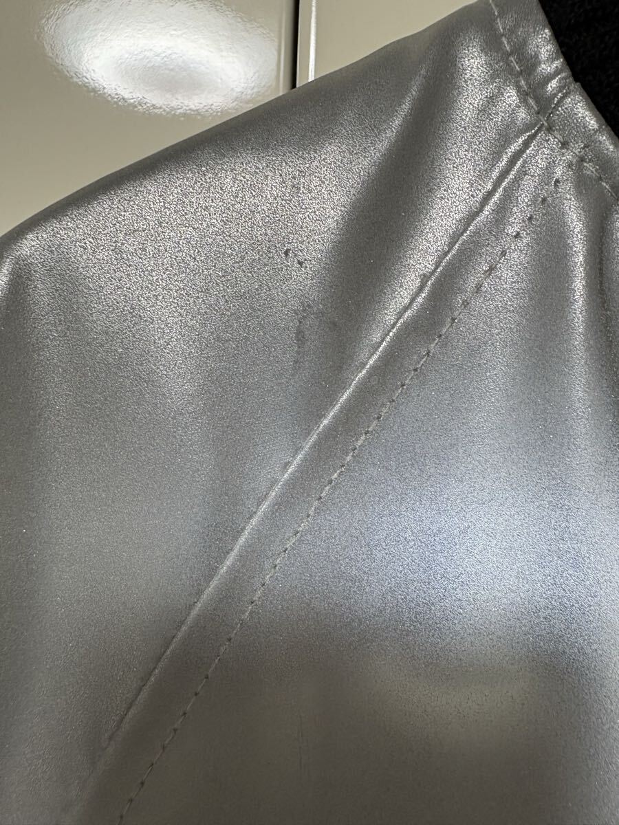 何度か着用し、使用感はあり、キズではないと思いますが、光沢のある素材のせいか、6枚目にあるようなシミのようなムラのようなものが何箇所かあります。ご注意ください。