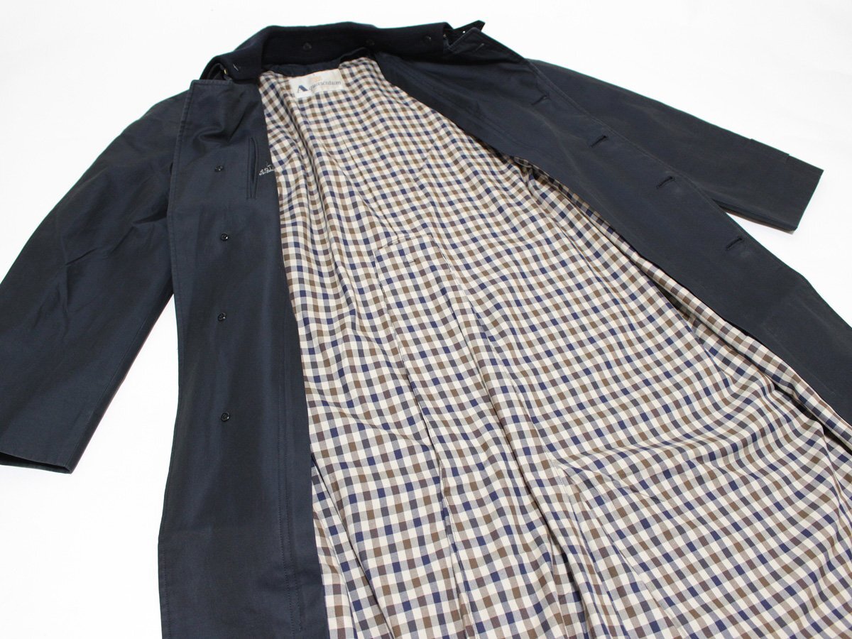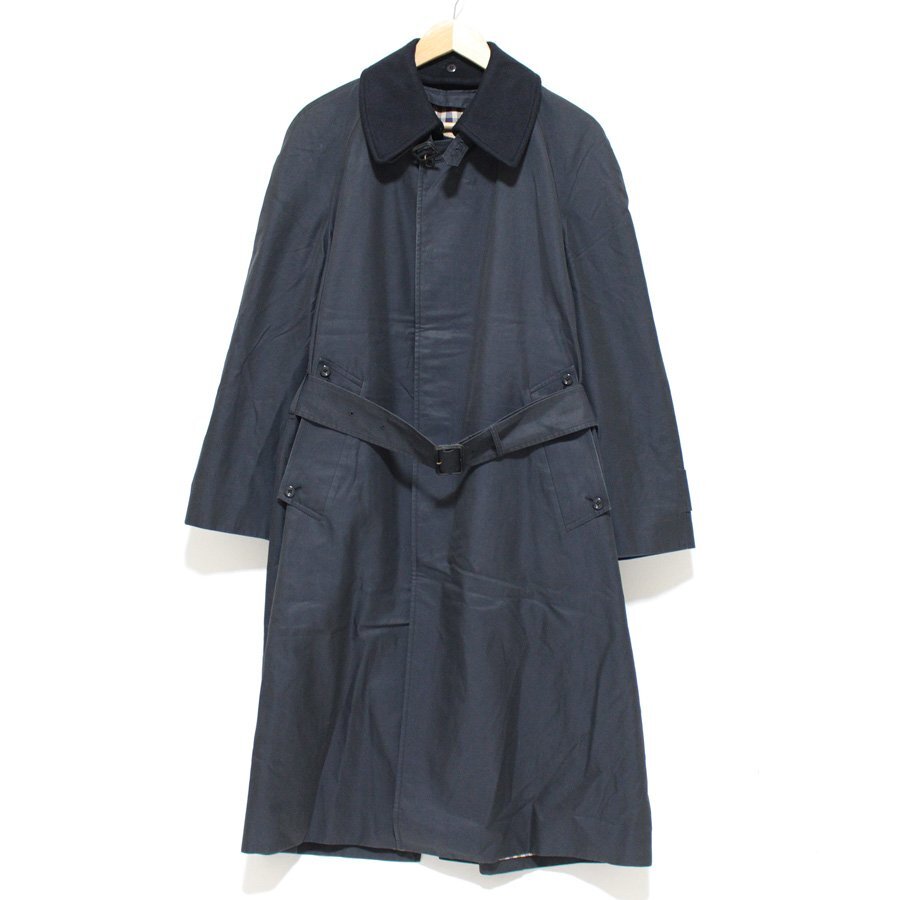 Aquascutum アクアスキュータム 襟カシミヤ ベルト付き ステンカラーコート 36 ネイビー