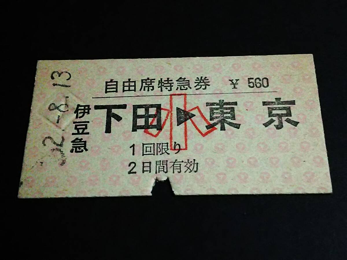 【(連絡)自由席特急券(A型)】 伊豆急/国鉄(伊豆急下田⇒東京(小)) S52.8.13