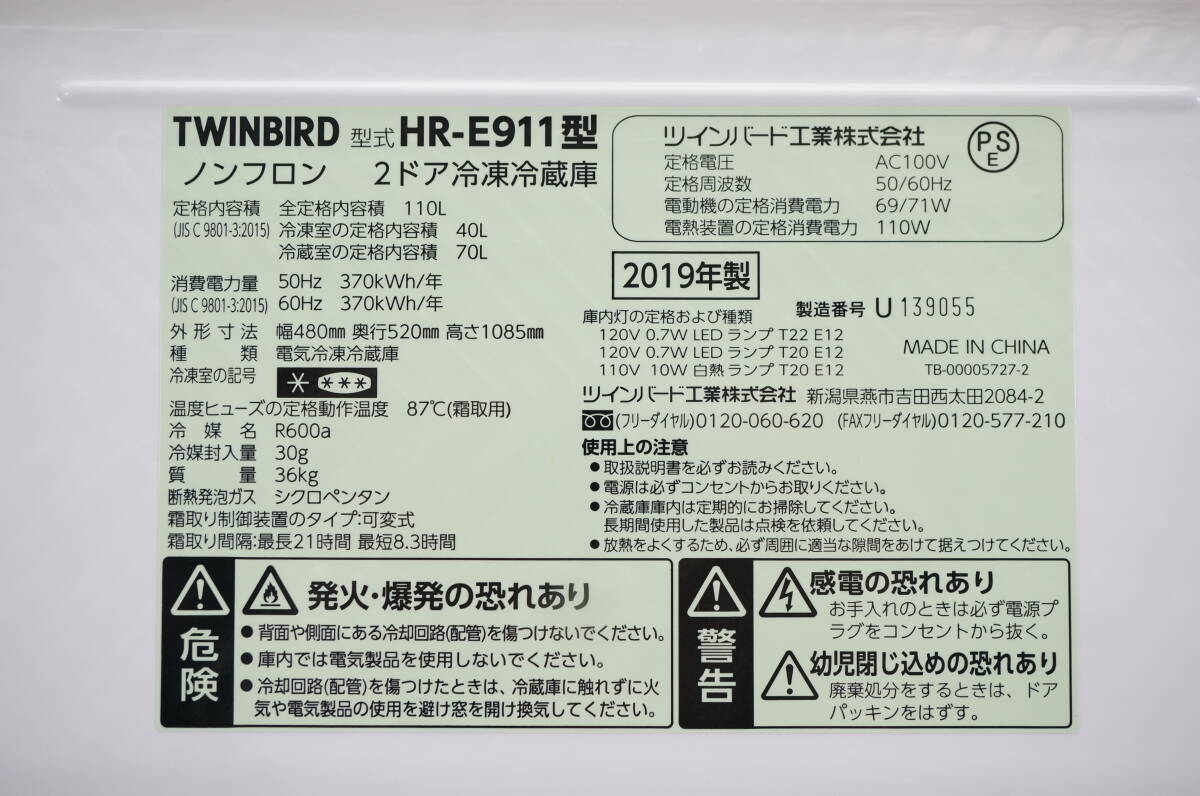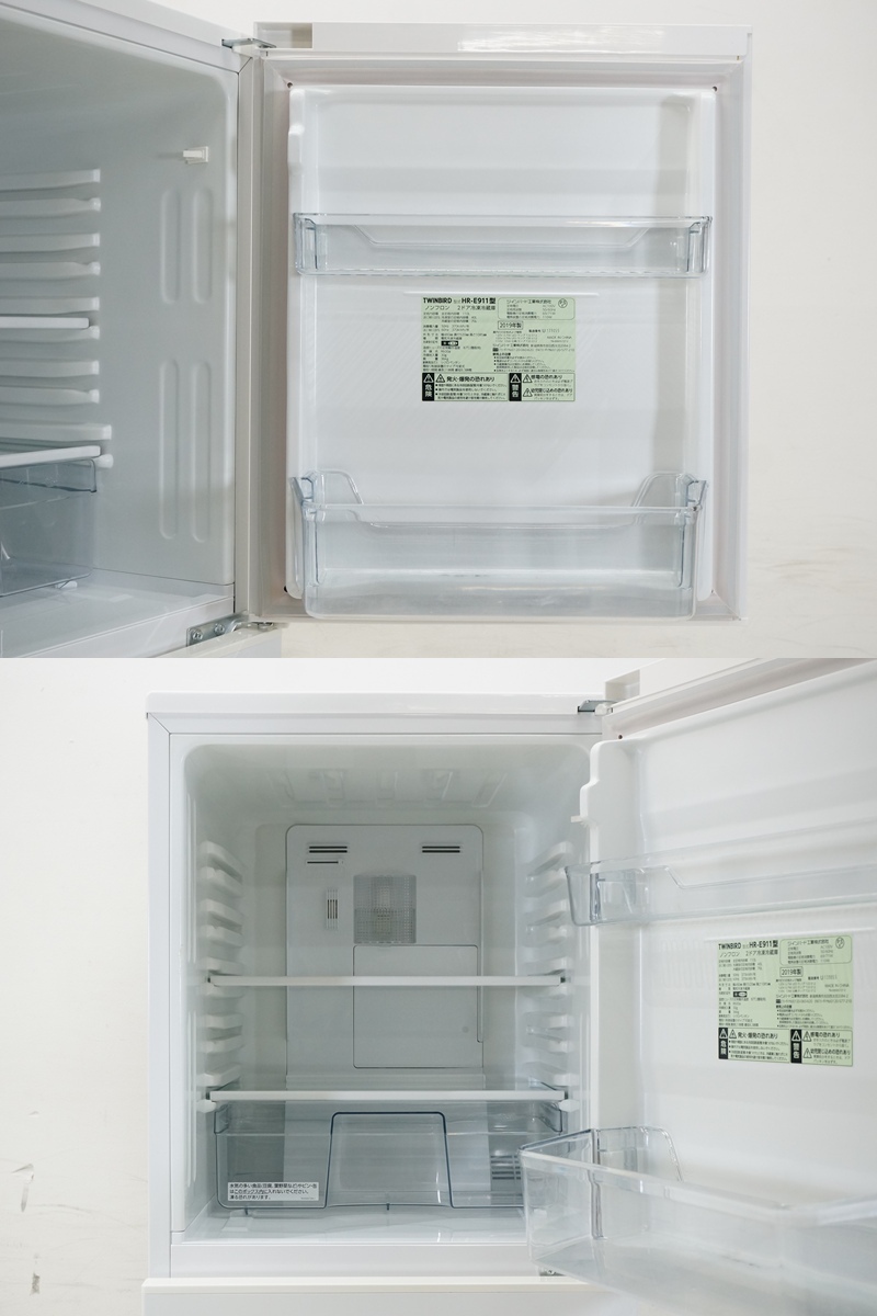 | 東ハ:【ツインバード】2ドア 冷凍冷蔵庫 110L HR-E911 右開きドア 耐熱天板 霜取り不要 ファン式 2段引出式冷凍庫 オフィス シングルライフ |