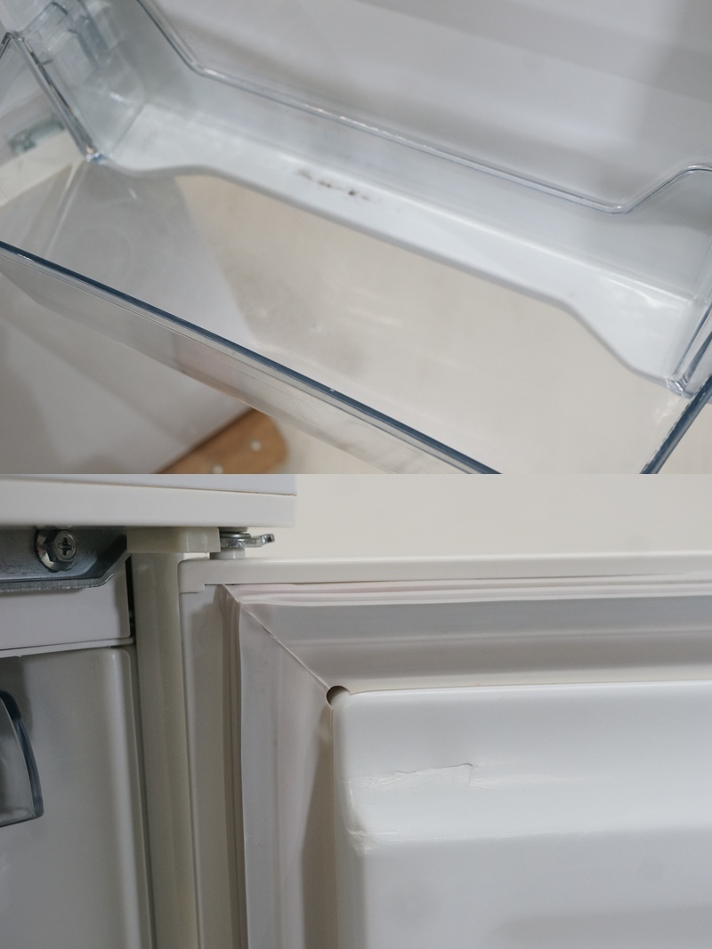 ■東ハ:【ツインバード】2ドア 冷凍冷蔵庫 110L HR-E911 右開きドア 耐熱天板 霜取り不要 ファン式 2段引出式冷凍庫 オフィス シングルライフ■ ◆一人暮らしの方にはもちろん、会社や共有スペースにもぴったりなサイズの 「コンパクトな2ドア冷凍冷蔵庫」 ◆面倒な霜取り不要のファン式冷凍庫 ◆大きめの40L冷凍庫 2段引出式フリーザー取り出しやすく、中身が見えやすい大きめな引き出し式。 ◆耐熱天板で、本体の上に電子レンジやトースターを置いて使うことができます。 ☆詳しくは→メーカーホームページへ ※動作確認済みです。 中古のお品となります。 付属品は写真にあるものが全てです。 喫煙環境下での使用の可能性がございます。 使用に伴うヨゴレ・キズ、冷凍室ドア内側の一部にヒビ割れ、 ニオイ残りがございます。 商品画像をよくご確認の上、ご参加ください。 [管理No.25110514R1] |