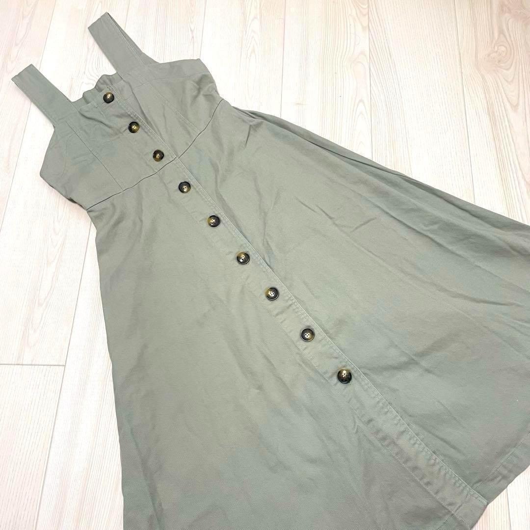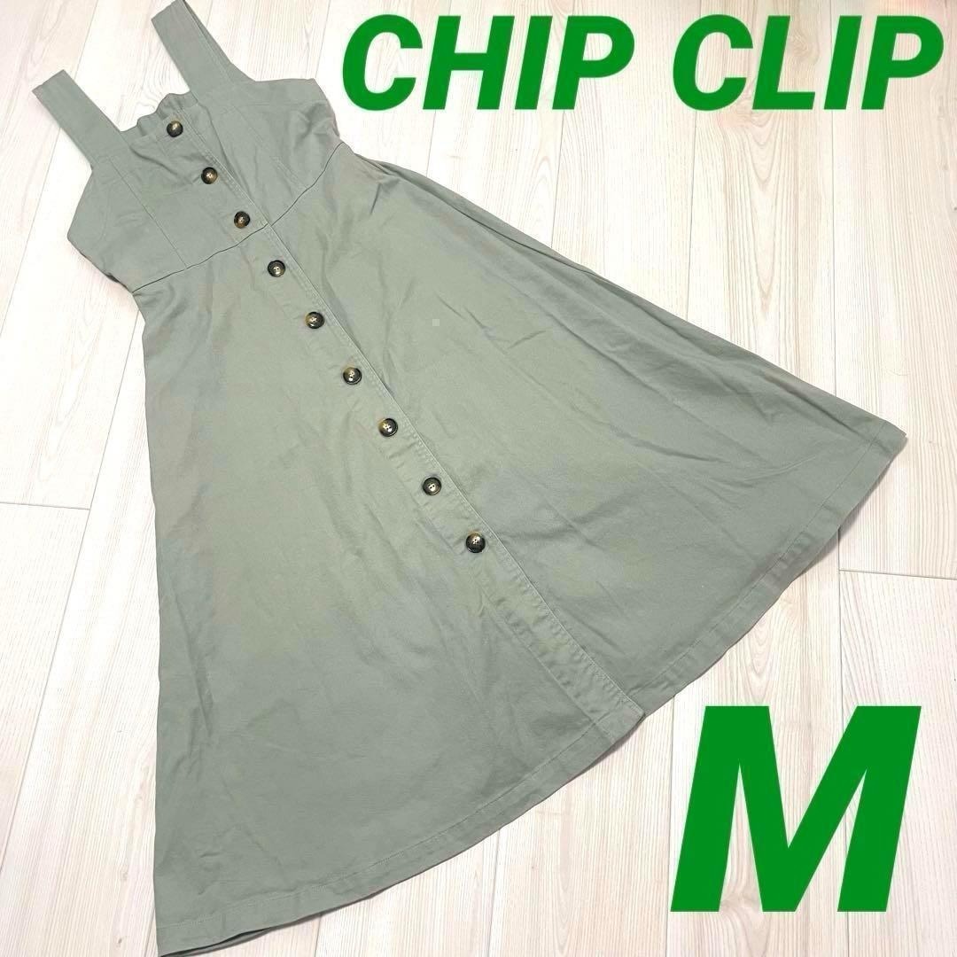 CHIP CLIPのジャンパースカート。コットン混紡のAラインロングスカートで、フロントボタン付きのスタイリッシュデザインです。