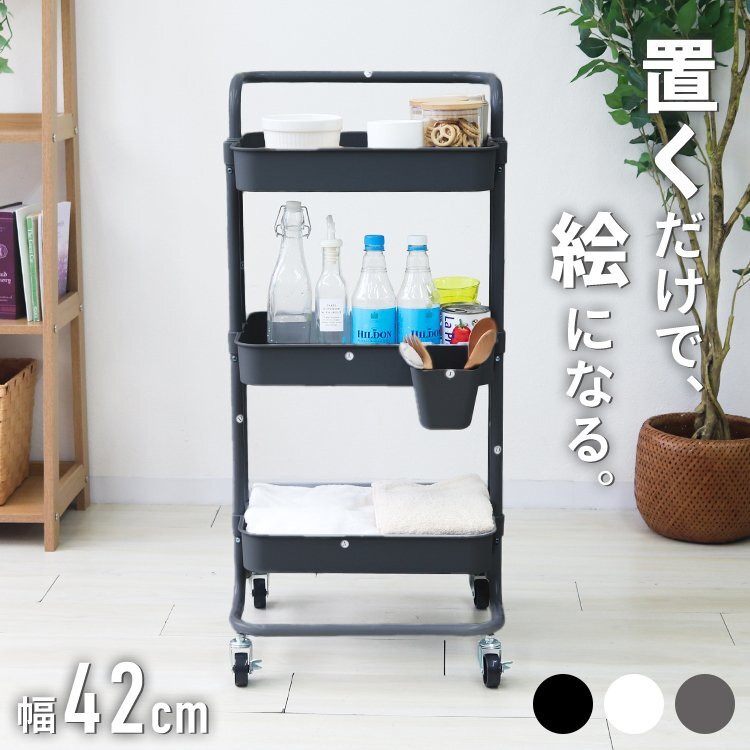 \お部屋に置くだけで絵になる収納ラック/ おしゃれなバスケットトローリーは、“見せる収納”としても大人気のアイテムです。 場所を選ばないシンプルでスタイリッシュなデザイン♪ 落ち着いたカラーで、インテリアになじみます。 ◆おすすめポイント◆ ・取り外し可能なハンドル付き ハンドルがついているお陰で移動も便利に♪ 移動だけではなく、ハンドル部分にタオルもかけられます! 不要な時はすぐに取り外せる所がポイントです! ・小物入れ・フックが付属で付いてきます! 取り外せる小物入れが2つ、L字セットが4つ付いてきます♪ 物をかけたり入れたりできる便利アイテムです! ・通気性抜群なワゴンの底面 かわいい花柄のメッシュデザインを採用しており、通気性だけでなく見た目もオシャレにこだわりました! ポリプロピレン製なので、サビる心配もなく楽々お掃除できちゃいます! ~使い方によって段階を調整できます~ 上段のトレーとパイプを外すことで2段としても使うことができます♪ 子ども用の収納ラックや、机下の収納用など幅広く活用できます! 【商品仕様】 ・カラー:ブラック ・サイズ:(約)幅42cm×奥行39.5cm×高さ89cm ・重量:(約)2.8kg ・耐荷重:(約)30kg ・材質:ポリプロピレン、炭素鋼、密度ボード 【注意事項】 ・パイプ同士を接合する際に指を挟まないよう注意してください。 ・付属のネジやナットは数が余る場合がございます。 ・設置した際にガタつく場合は、キャスターのナットの位置を変え高さを調整してください。 ・製造工程や輸送中に多少の傷などがある場合がございます。こちらは返品対象となりませんので、予めご了承ください。 ・商品は、モニターによって色合いが異なって見える場合があります。 ・仕様・デザインは改良のため予告なく変更することがあります。 |