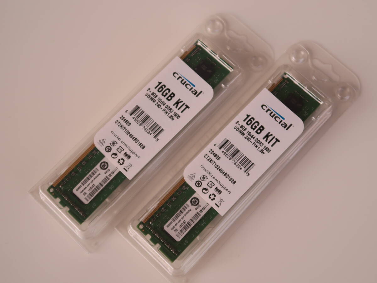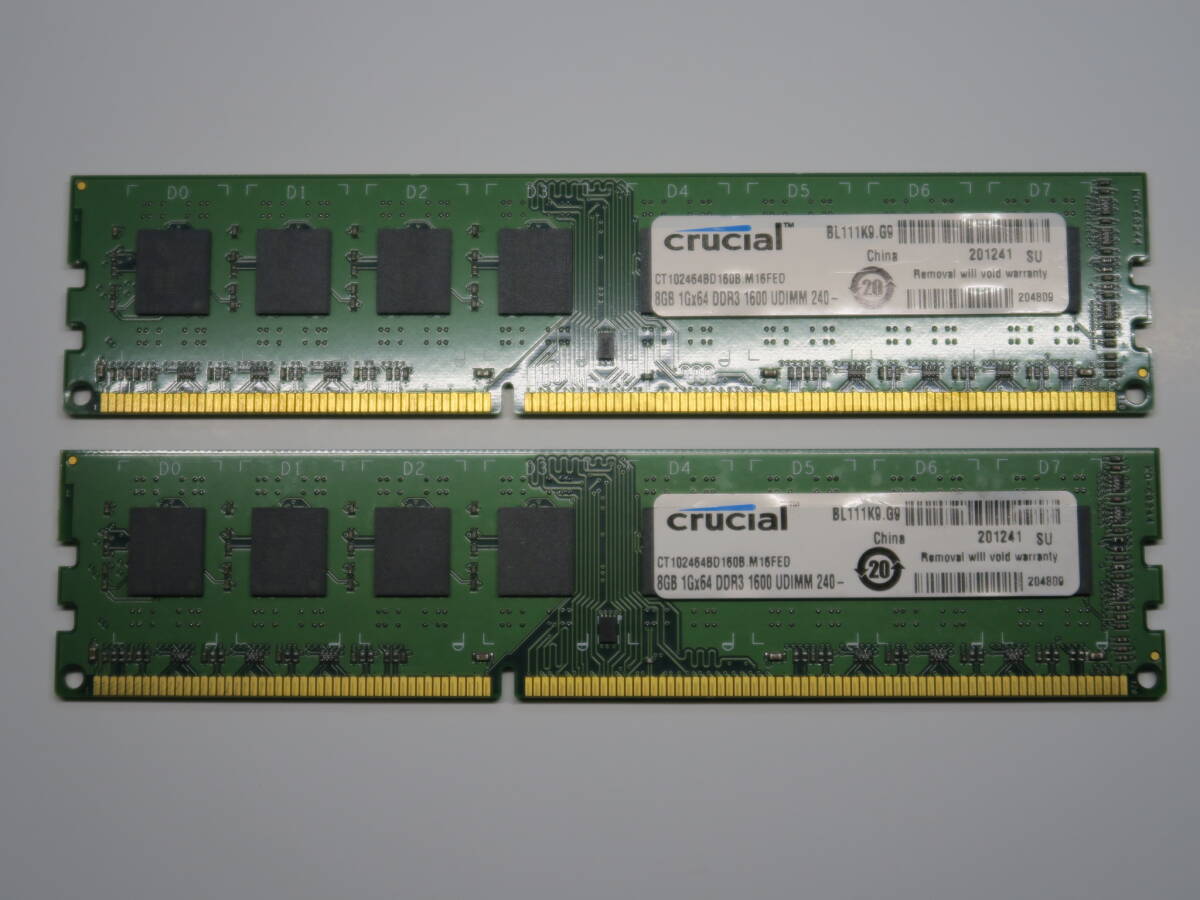 デスクトップメモリ Crucial Micron DDR3-1600 PC3-12800U 8GB ×2 計16GB です。