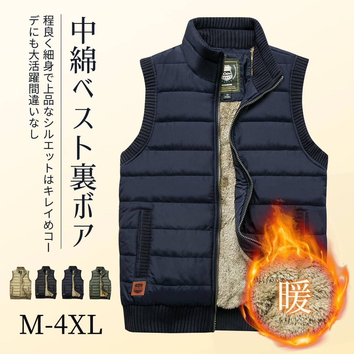 新品★メンズ ボアベスト 防寒 綿 中綿ベスト裏ボア 暖かい 保温 秋冬 起毛 旅行 登山 釣り アウトドア 父の日 ブラックM