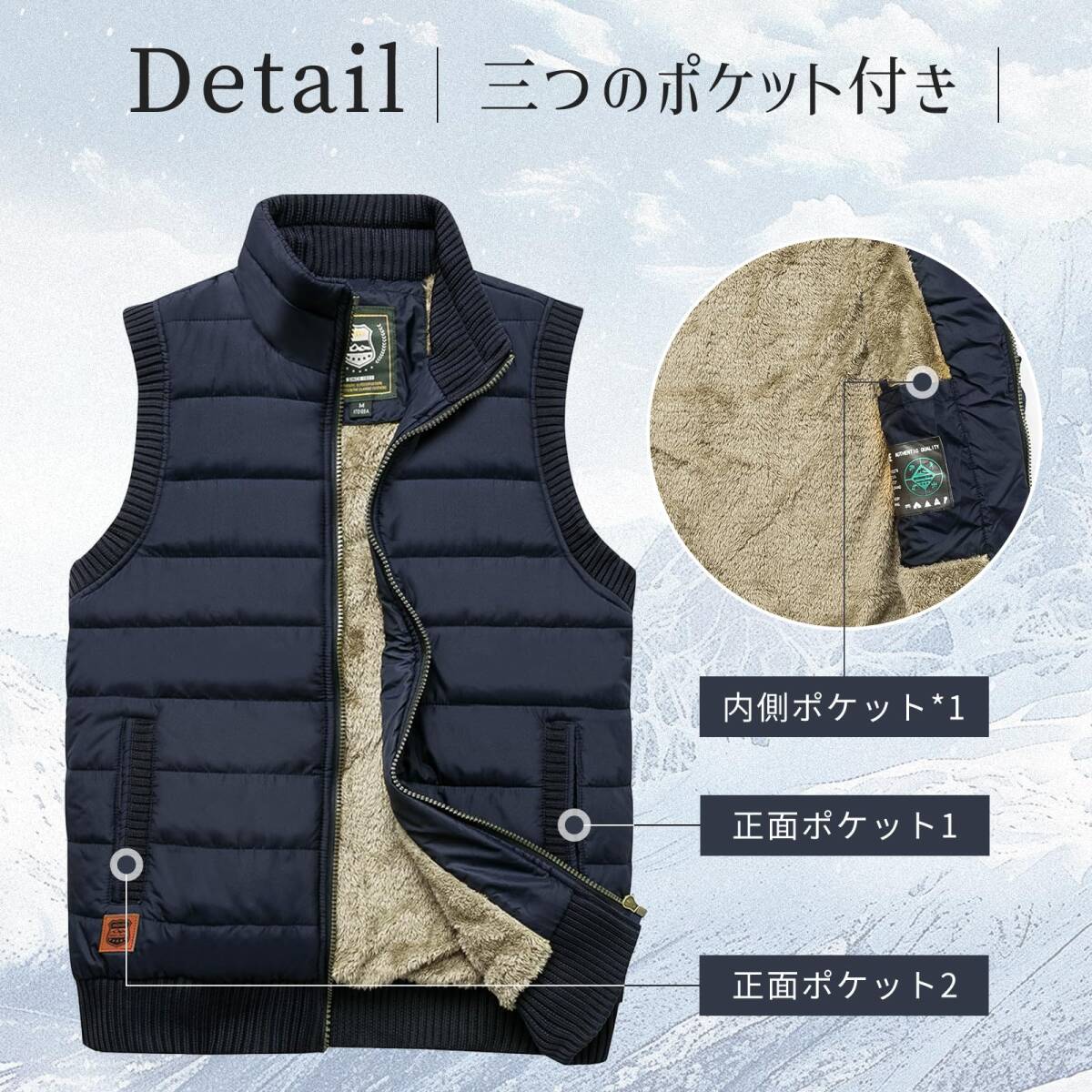 新品★メンズ ボアベスト 防寒 中綿ベスト裏ボア 暖かい 保温 秋冬 起毛 旅行 登山 釣り フリース もこもこ アウトドア 父の日 ブラックM