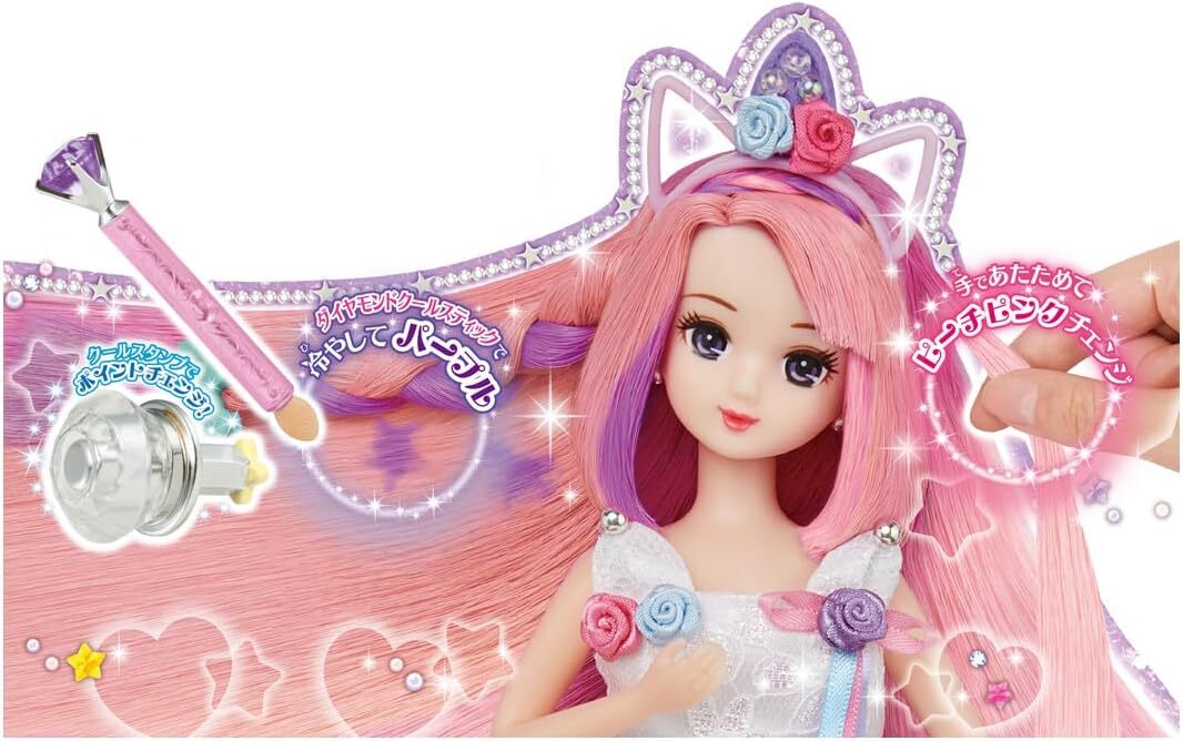 髪色が、ゆめいろな3色に簡単にカラフルチェンジできるリカちゃんフレンドみさきちゃんです。