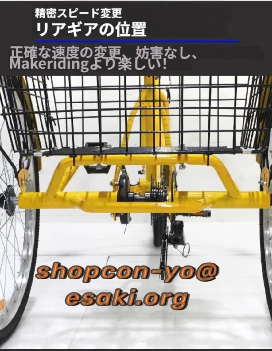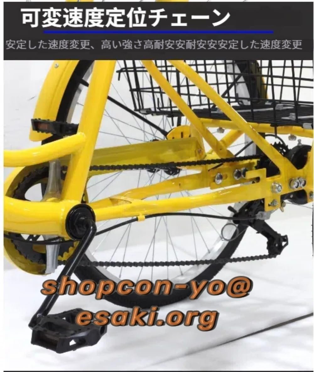 商品の説明 商品仕様 商品名:三輪自転車 使用目的:成人 自転車の色:ブラック/イエロー/ブルー/レッド /パープル 収容力:200KG 適用可能な目的:大人/高齢者3つのタイヤのデザイン、三角安定性が高く、初心者のために、安全係数が高く、あなたの家族が安全に旅行するのは簡単ではありません。 大きなリアバスケットを持つこの自転車は、多くの野菜、果物などを保持することができます . ピクニック、ショッピング、エンターテイメントなどにも理想的な選択です。野菜や果物やベントを後ろの座席のバスケットに入れたいと思うことができます。 そして、あなたの乗り心地を始めてあなたのお気に入りのピクニックの場所に移動します。
