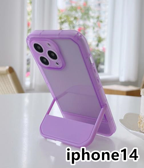 iphone14ケース カーバー スタンド付き 半透明 お洒落 韓国 軽量 ケース 耐衝撃 高品質 紫