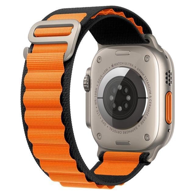 42/44/45/46/49mm 新色 アップル ウォッチ ブラック&オレンジ アルパイン ループ ナイロン バンド ストラップ Apple Watch